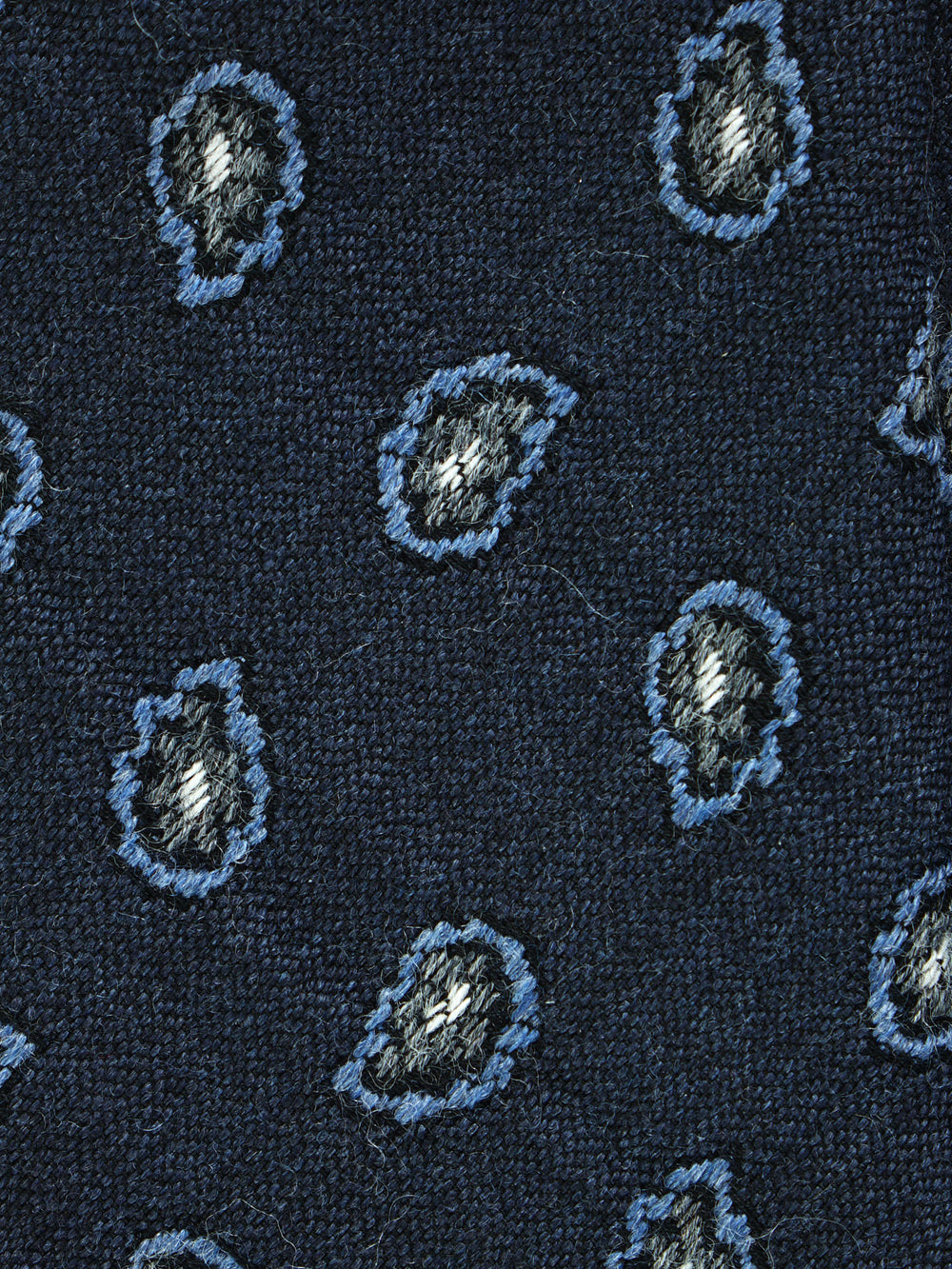 Fondo blu con disegno cashmere in celeste, grigio e bianco