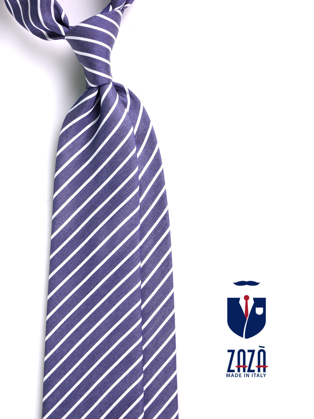 Eleganza dinamica e freschezza materica. Questa cravatta Zazà in 100% puro cotone ridefinisce il concetto di formalità per la stagione calda. La texture opaca e naturale del cotone smorza la serietà del classico motivo regimental blu e bianco, trasformandolo in un accessorio versatile, perfetto per l'uomo contemporaneo che vive tra meeting creativi e weekend in movimento. Un tocco di "sprezzatura" moderna per chi vuole distinguersi con grinta e disinvoltura, senza mai apparire troppo impostato.
