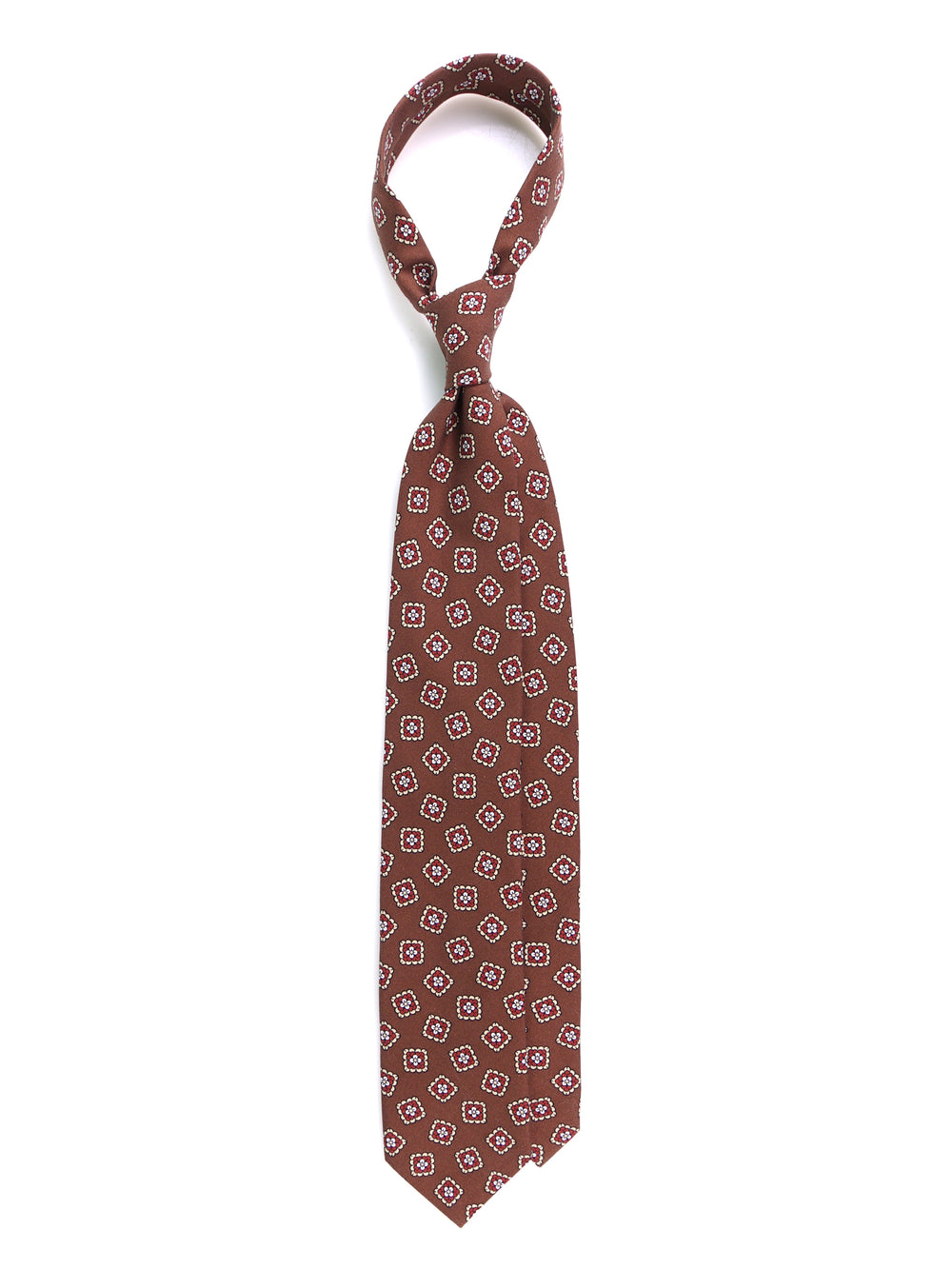 Espressione suprema dell'eleganza "Old Money", questa cravatta Don Mimì in seta Madder incarna il vero lusso silenzioso. La seta Madder è celebre per la sua finitura opaca, "gessosa" e straordinariamente morbida al tatto, una scelta da vero intenditore che si distacca dalla lucentezza delle sete comuni. Il fondo marrone, sobrio e profondo, è ritmato da un micro-pattern geometrico che conferisce rigore e tridimensionalità. Un accessorio intramontabile, pensato per il professionista affermato che comunica il proprio status attraverso dettagli di pregio assoluto e una classe che non ha bisogno di alzare la voce.