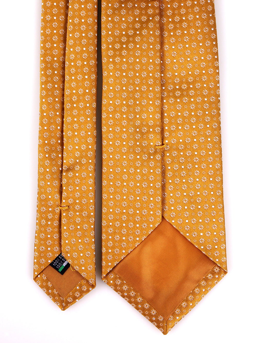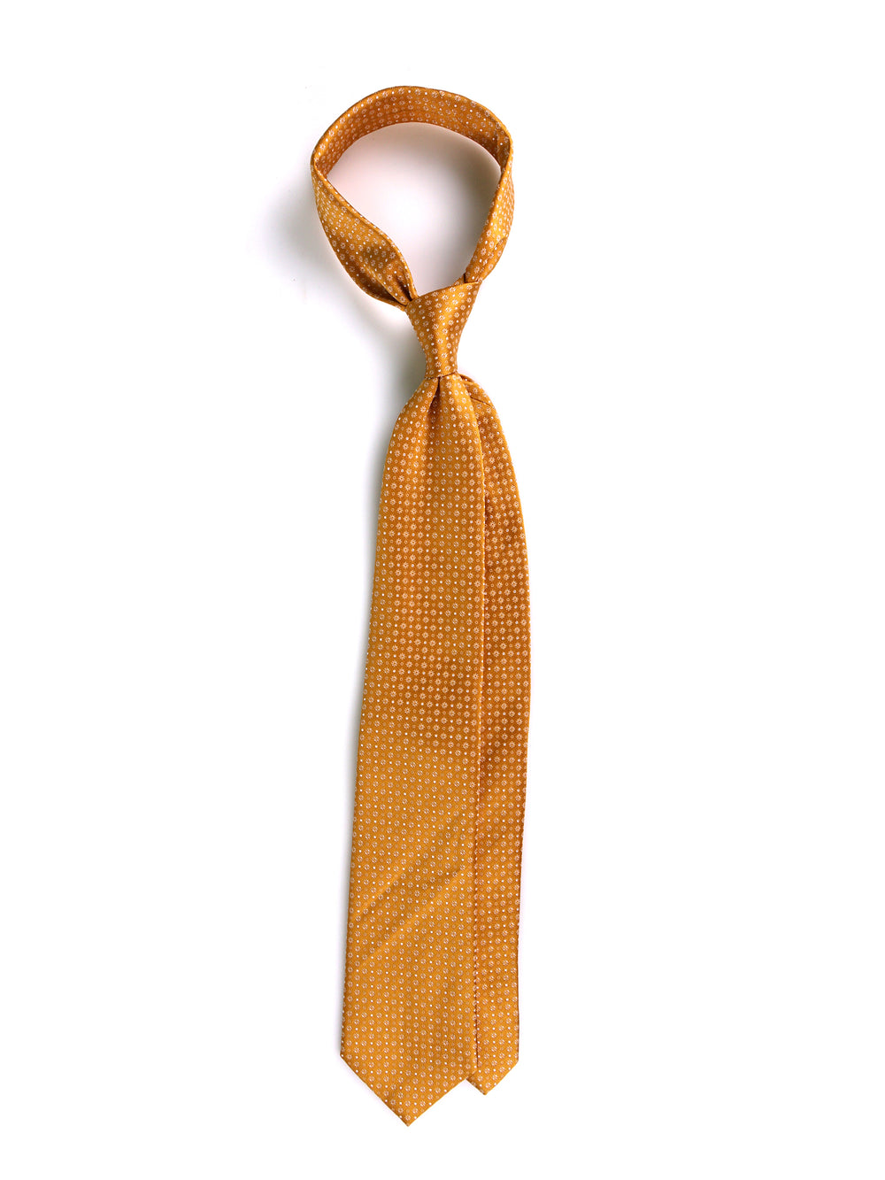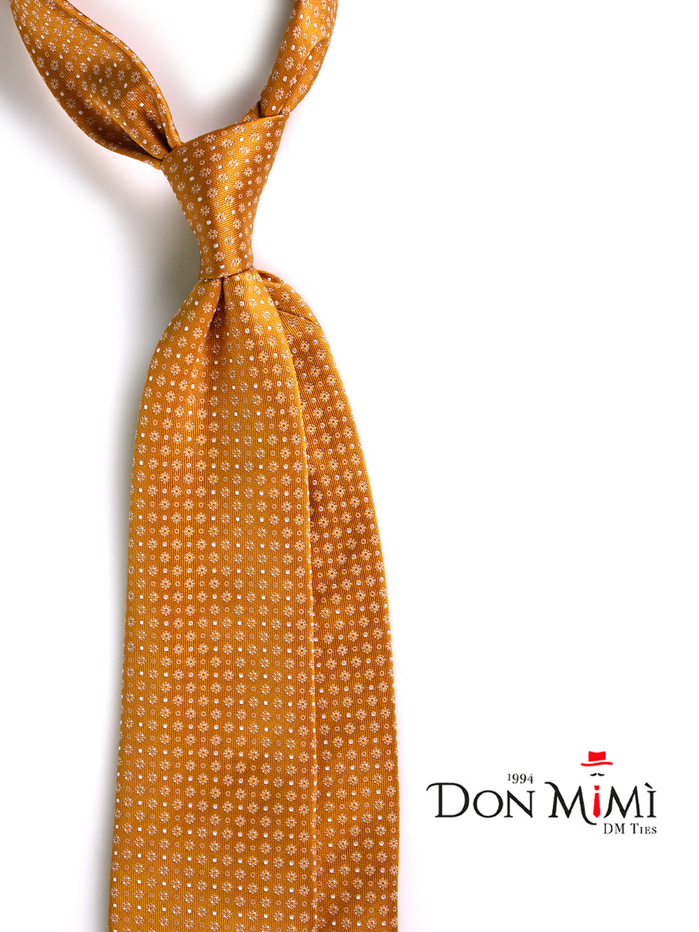 Un investimento in un'eleganza intramontabile. Questa cravatta 3 pieghe firmata Don Mimì, realizzata nell'eccellenza assoluta della pura seta tessuta, rappresenta il non plus ultra per le occasioni di massimo prestigio. Il luminoso e ricco sfondo oro, arricchito da un sofisticato micro disegno, conferisce uno status immediato a chi la indossa, illuminando il volto con raffinatezza. La trama pregiata della seta riflette la luce solare con classe e rigore, garantendo una tenuta del nodo perfetta e una caduta impeccabile: il vero simbolo dell'alta sartoria italiana per la bella stagione.