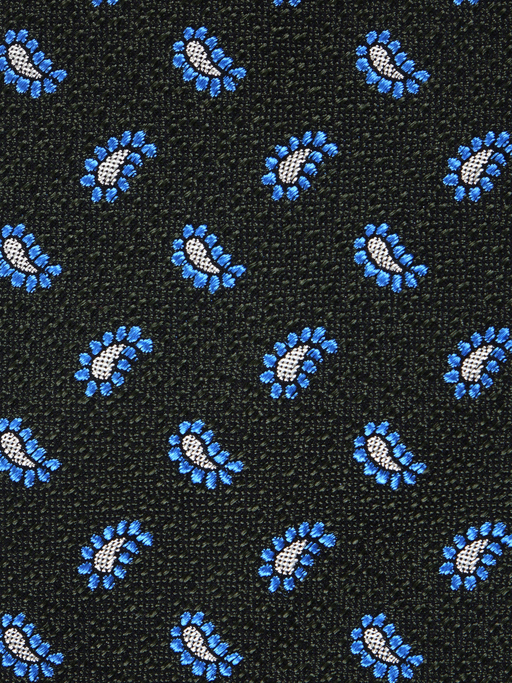 Fondo verde con piccolo disegno cashmere in celeste e bianco MANO IN ITALIA