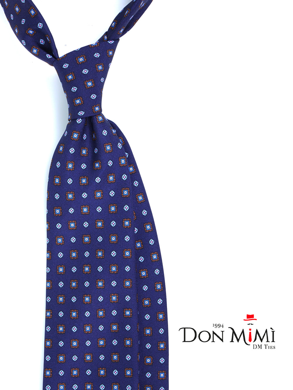 Questa cravatta in seta inglese stampata blu, impreziosita da un raffinato motivo geometrico marrone, azzurro e rosa, è l’accessorio perfetto per chi desidera uno stile classico con un tocco di modernità. Un connubio perfetto tra tradizione sartoriale e raffinatezza, realizzata a mano in Italia.