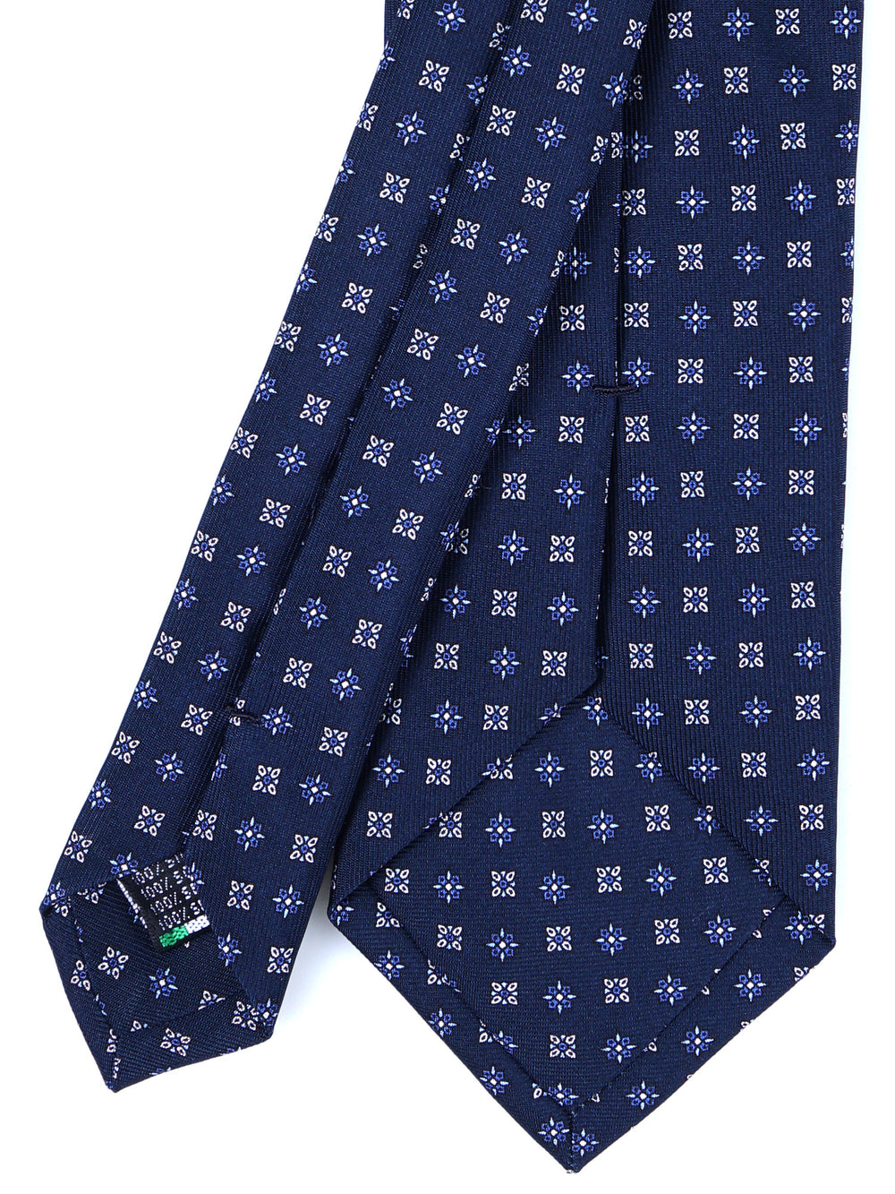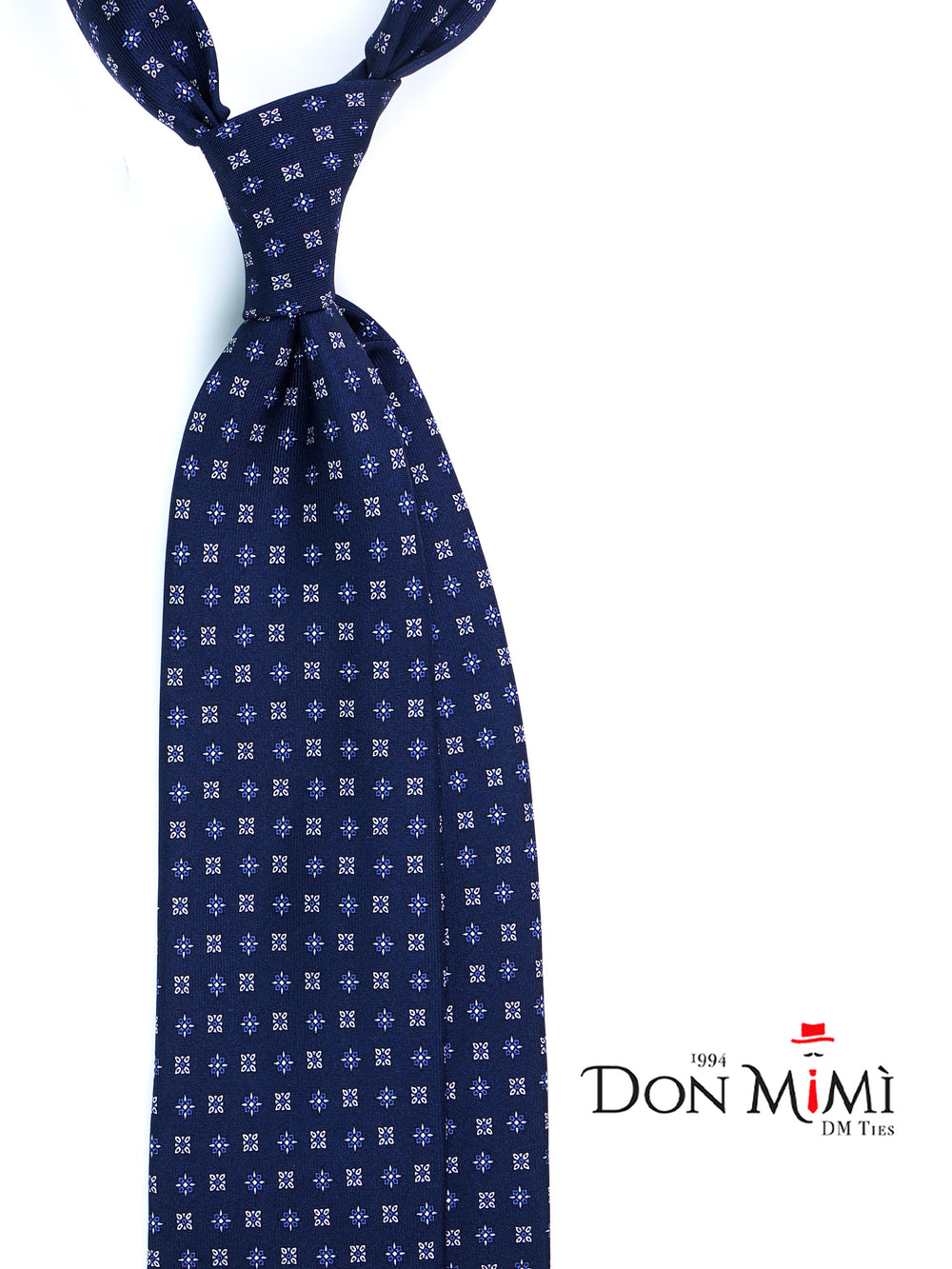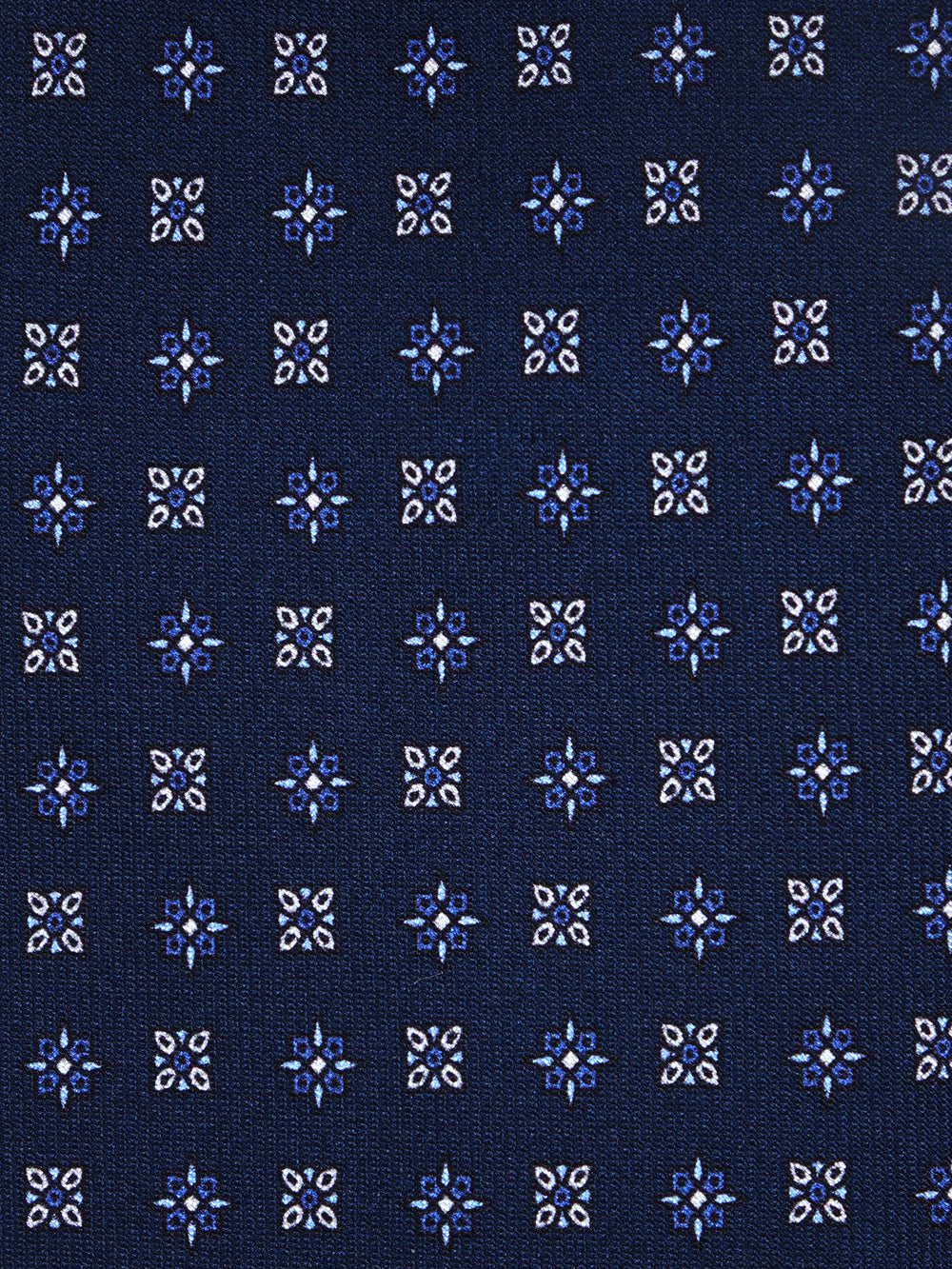 Se esiste una cravatta essenziale, è questa. È l'epitome dell'eleganza formale, un pezzo chiave della nostra collezione Autunno/Inverno. Realizzata in pregiata seta inglese, la sua forza risiede nella palette cromatica tonale: un profondo e autorevole Blu Navy fa da sfondo a un delicato disegno nei toni dell'azzurro e del bianco. Questa armonia di colori, unita alla consistenza della trama in saia di seta, la rende incredibilmente versatile e sofisticata. È l'uniforme dell'uomo di successo.