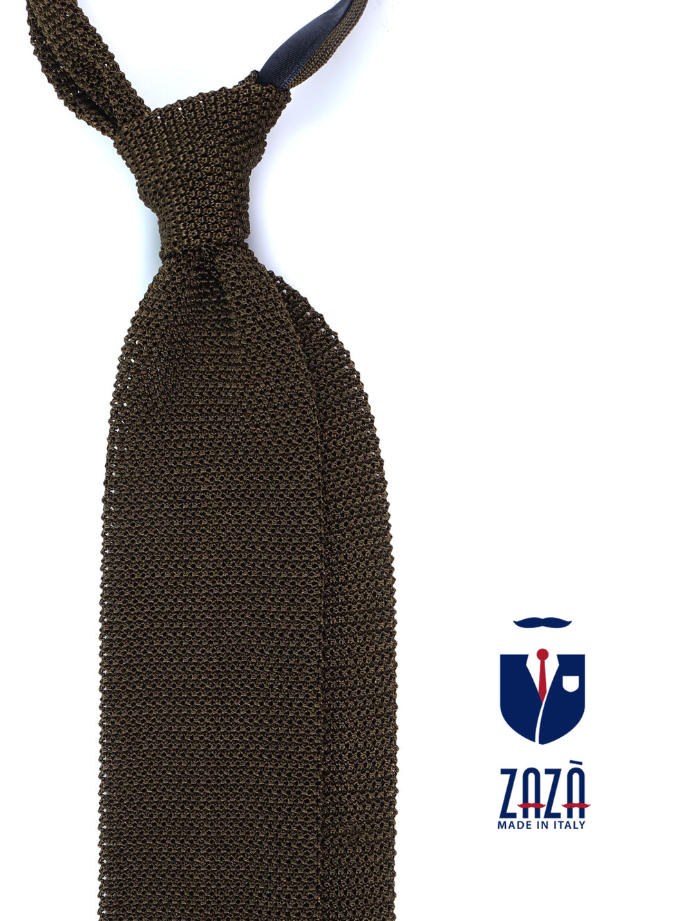 Dimentica la rigidità del completo classico: la cravatta in maglia "Macca" è l'essenza della Sprezzatura italiana. Con la sua particolare lavorazione a "grana di riso", questo accessorio aggiunge una texture tridimensionale e grintosa che cattura immediatamente l'attenzione. Il verde oliva è una scelta cromatica strategica: meno scontato del blu, più versatile del nero, perfetto per l'uomo Zazà che vuole comunicare personalità e dinamismo, sia in ufficio che durante un aperitivo post-lavoro.