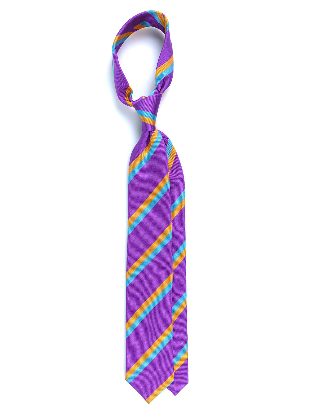 Questa cravatta regimental è una dichiarazione di stile: decisa nei colori, elegante nei dettagli, perfetta per chi ama farsi notare con classe.