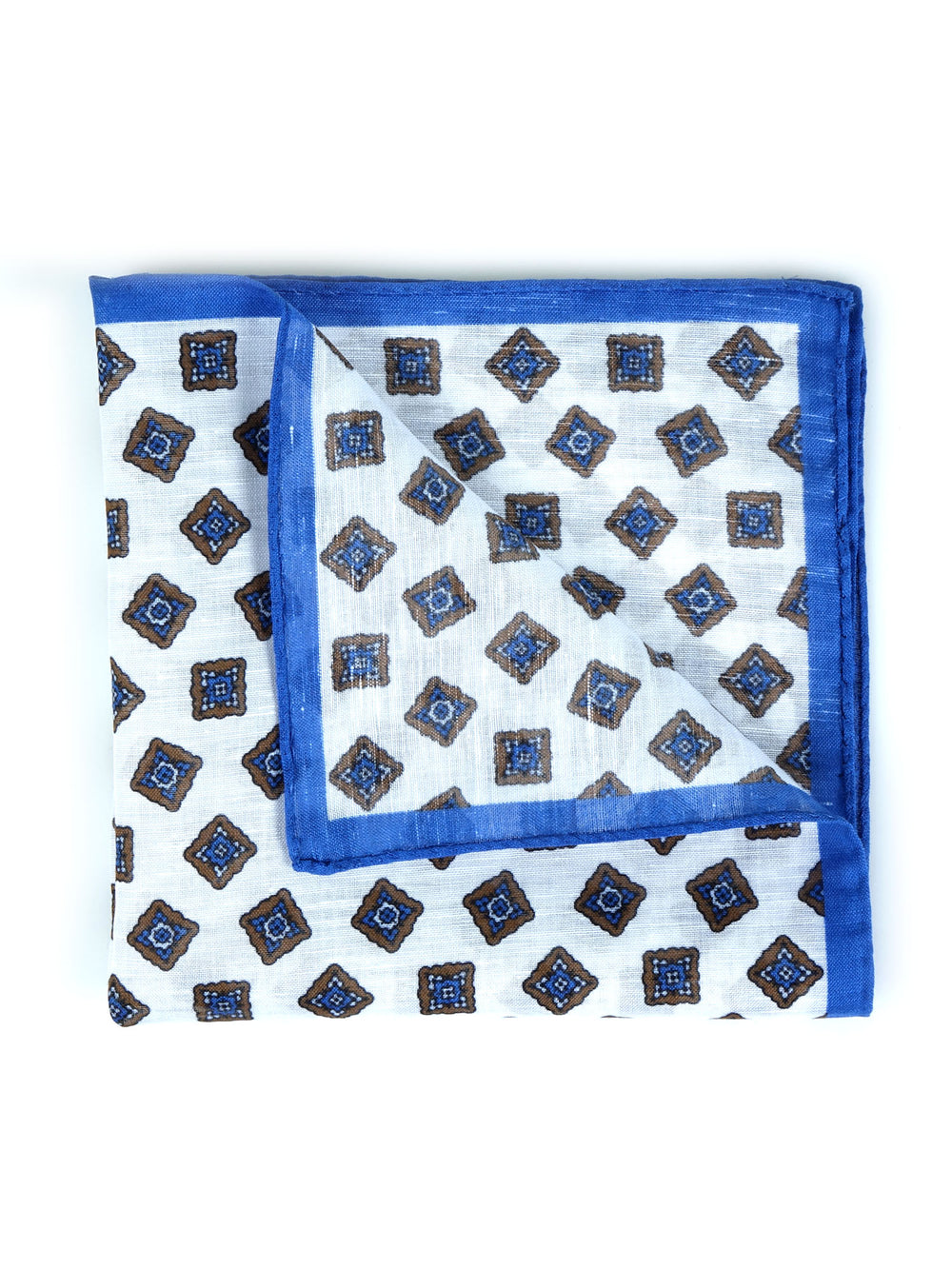 AMELIE White/Electric Blue Linen Pocket Square