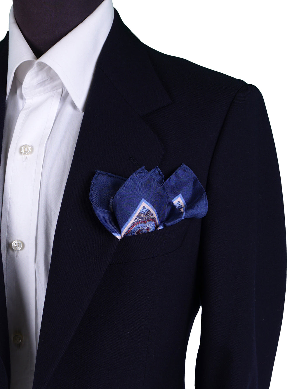 Un accessorio che è un vero e proprio "quattro fazzoletti in uno", pensato per l'uomo che ama la versatilità e l'eleganza. Questo fazzoletto da taschino è realizzato in purissima seta stampata italiana, dalla lucentezza vibrante e dalla mano morbida. Il suo design unico combina due anime: un centro con un micro-motivo geometrico su fondo rosso, e un sontuoso bordo con un classico motivo cachemire (paisley) nei toni del blu e dell'ocra. Questa costruzione permette, a seconda della piega, di creare look completamente diversi con un solo accessorio.