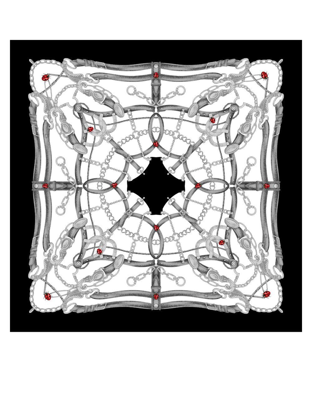 White scarf 90x90cm in LADY BUGS printed silk