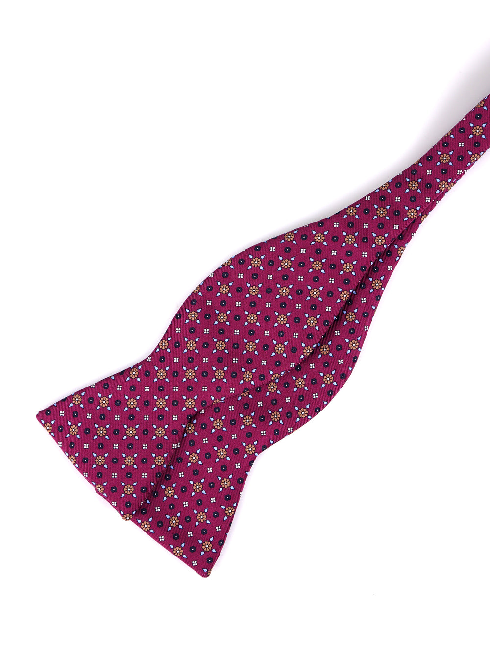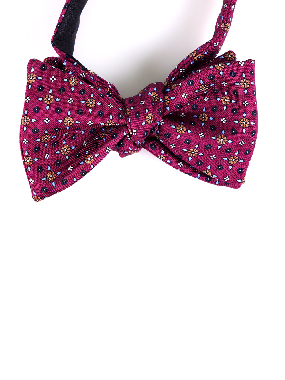 Il papillon da annodare "Simone" non è un semplice accessorio, ma un sigillo di autentica classe sartoriale. Realizzato in pregiata seta inglese, nota per la sua mano ferma e opaca, questo farfallino permette di scolpire un nodo voluminoso e architettonico, simbolo distintivo del gentiluomo che non scende a compromessi. Il fondo vinaccia, profondo e autorevole, è vivacizzato da un raffinato microdisegno che intreccia tonalità beige, celesti e blu, rendendolo un investimento intramontabile per il guardaroba dell'uomo che ama il rigore dell'eleganza classica.