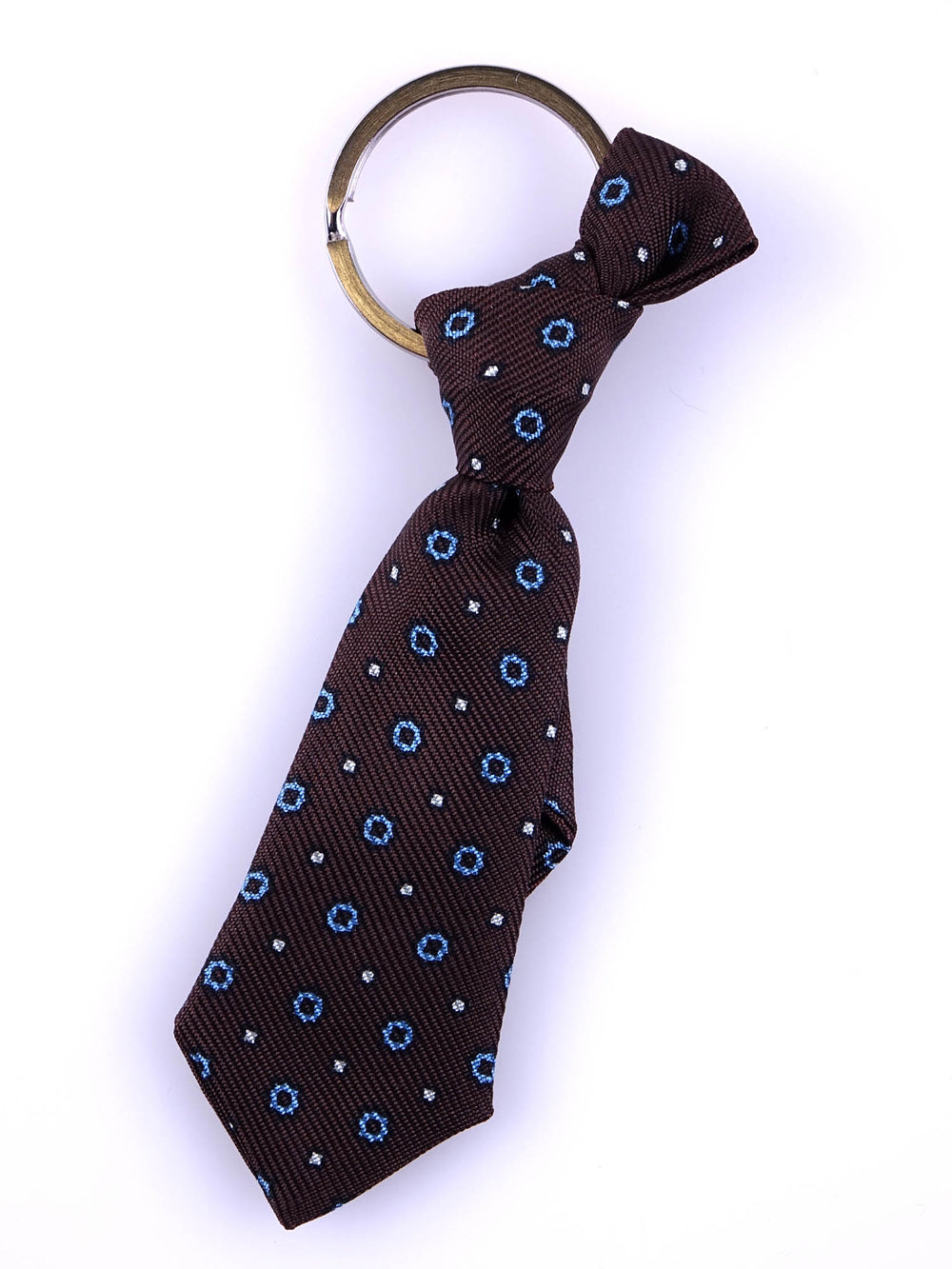 Brown Pure Silk Luxury Tie Keychain with Steel Ring