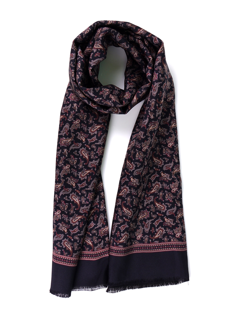 Un accessorio che incarna il concetto di lusso funzionale. Questa sciarpa tubolare Don Mimì rappresenta la sintesi perfetta tra l'estetica sofisticata della seta e il calore pragmatico della lana. Il lato esterno in seta, con il suo elaborato motivo paisley su fondo nero, conferisce un tocco di prestigio visivo, mentre l'interno in lana garantisce protezione contro i rigori invernali. Un capo pensato per il professionista che non rinuncia alla distinzione nemmeno nelle giornate più fredde, offrendo un equilibrio impeccabile tra status ed eleganza intramontabile.