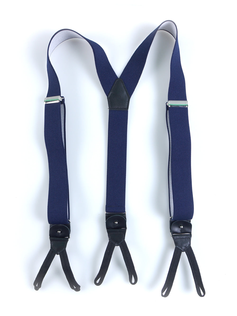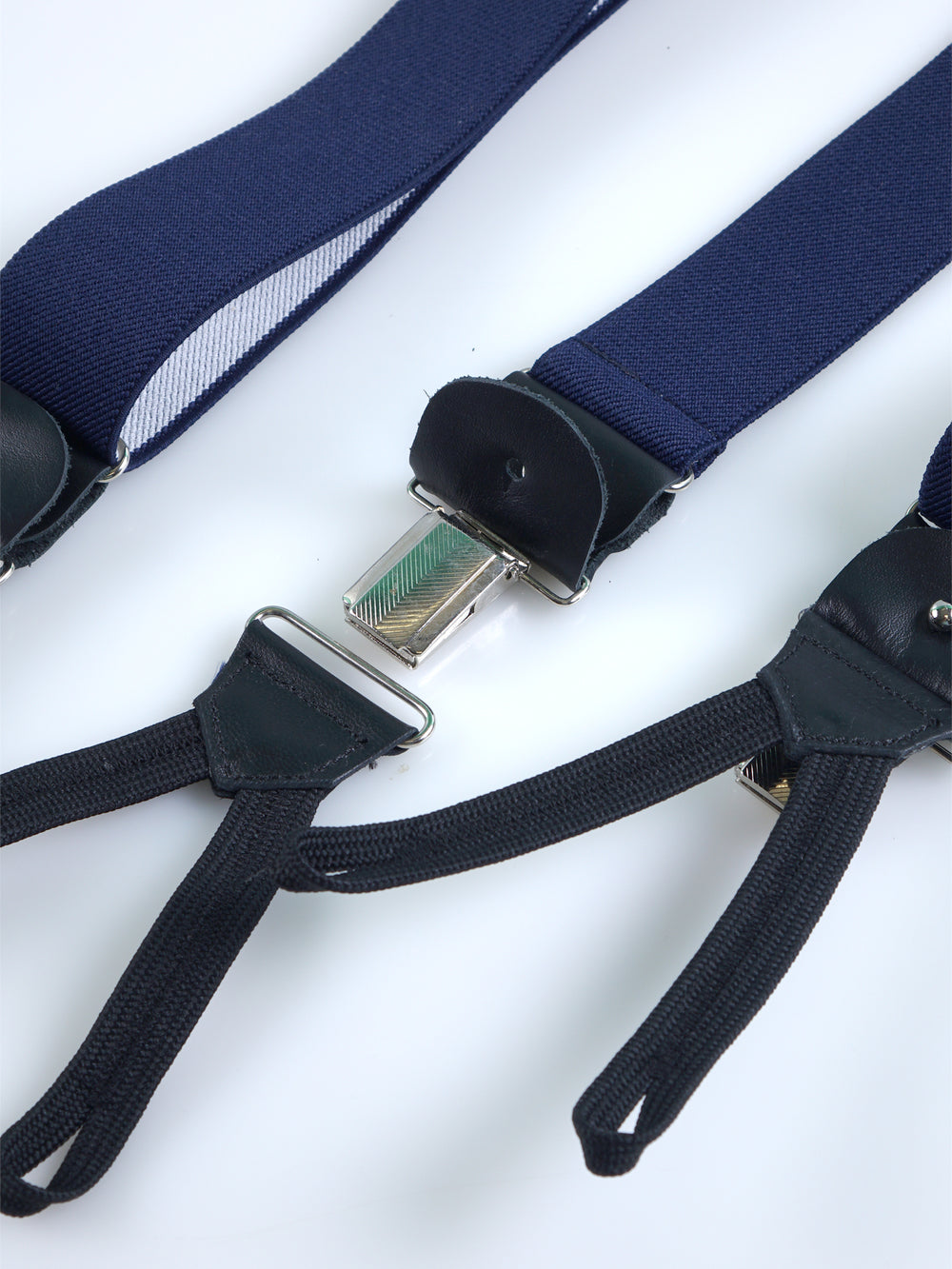 Queste bretelle Don Mimì in elastico blu navy, pelle nera e lacci in tessuto rappresentano l’equilibrio perfetto tra tradizione e modernità. Un accessorio versatile per uomini che amano distinguersi con eleganza e personalità.