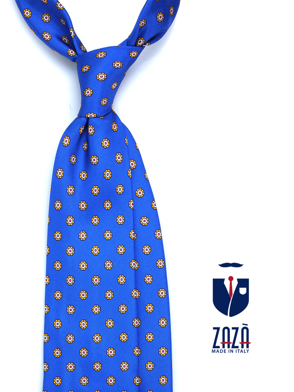Cravatta 3 pieghe blu elettrico in seta stampata VANNY