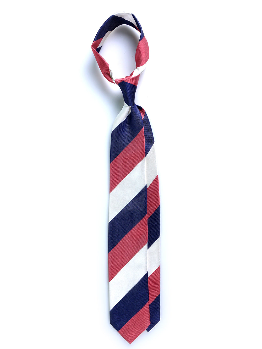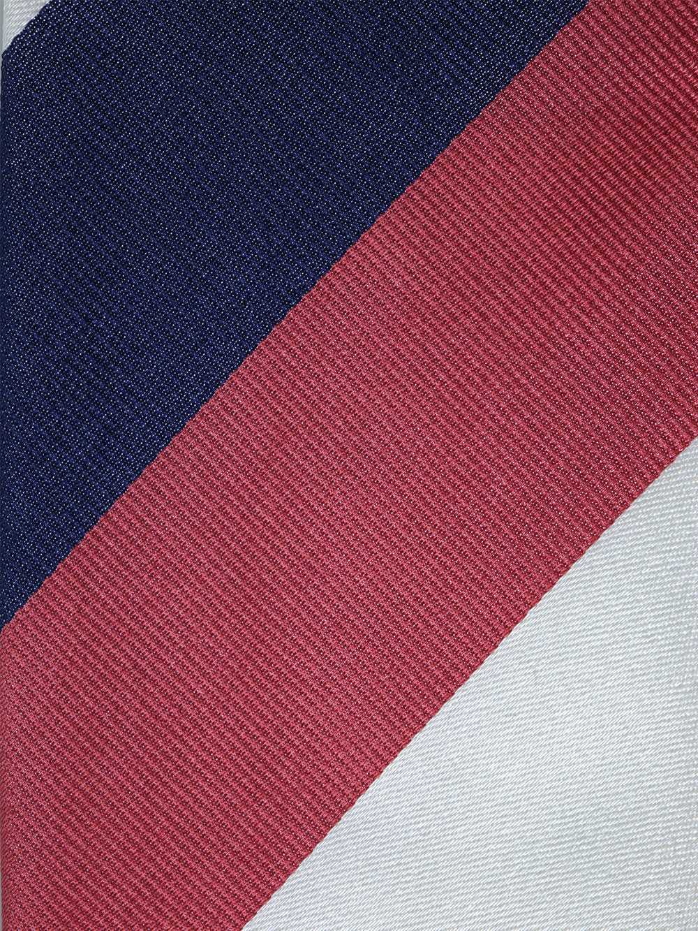 Un classico intramontabile che trascende le mode: la cravatta Regimental è il simbolo indiscusso dell'eleganza istituzionale e dell'estetica "Old Money". Don Mimì propone questo accessorio essenziale per l'uomo di potere, caratterizzato da una trama in 100% seta jacquard che dona corpo e struttura al nodo. L'alternanza rigorosa di blu navy, rosso profondo e bianco non è solo una scelta cromatica, ma una dichiarazione di status, autorità e rispetto per la tradizione sartoriale.
