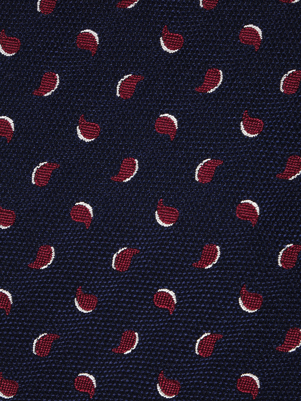 Fondo blu scuro con micro gocce in bordeaux e contorno bianco