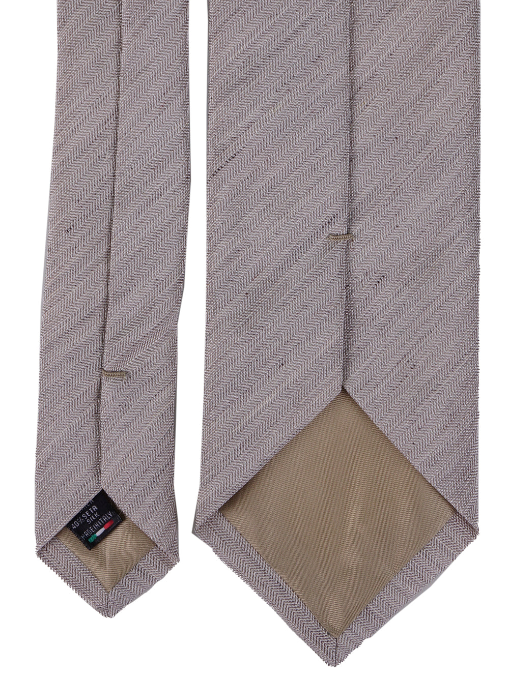 Il consiglio di stile: Grazie alla leggerezza traspirante e alla sottile ruvidità del blend lino-seta, ti suggeriamo un nodo Four in Hand (Semplice) leggermente allentato. Questa cravatta acquisirà quella voluta asimmetria che grida "sprezzatura" e coolness, ideale per esaltare il colletto di una fresca camicia estiva senza mai apparire troppo rigido.