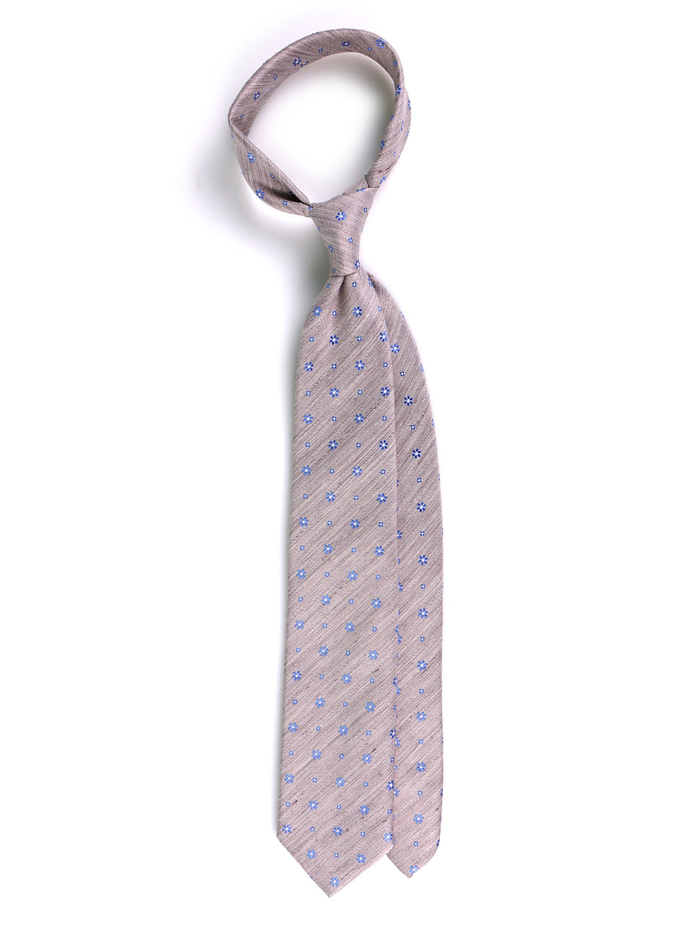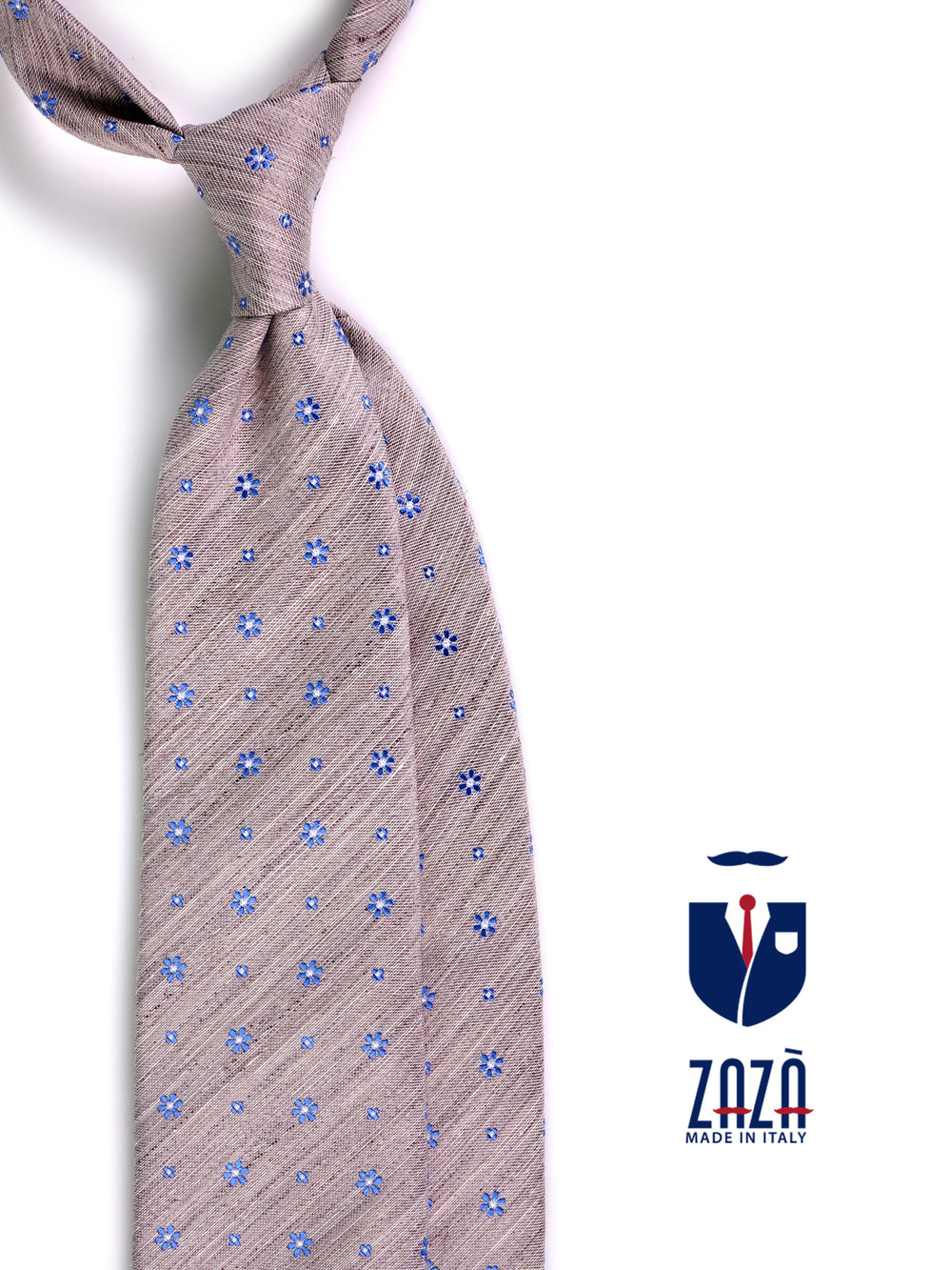 Un vero e proprio statement di stile per l'uomo contemporaneo. Questa cravatta Zazà, realizzata in un freschissimo blend estivo di lino e seta, è l'accessorio definitivo per vivere la bella stagione con grinta e dinamismo. Il luminoso fondo beige incontra un micro-motivo floreale blu navy, creando un gioco visivo in pieno trend, irresistibile e cool & sophisticated. La matericità ruvida e naturale del lino viene ammorbidita dalla brillantezza della seta, rendendo questa cravatta il dettaglio perfetto per esprimere la tua personalità e spezzare le rigide regole formali con pura attitudine smart.