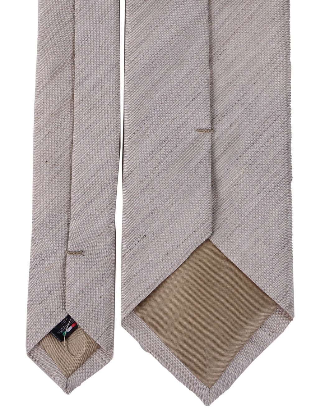 Il consiglio del sarto: Grazie alla particolare consistenza fresca e "croccante" del misto lino e seta, ti suggeriamo di optare per un nodo Four in Hand (Semplice). Questo nodo, leggermente asimmetrico, valorizza l'animo vissuto e chic del tessuto senza appesantire il collo della camicia estiva, regalando quel tocco di sprezzatura perfetto per le giornate calde.
