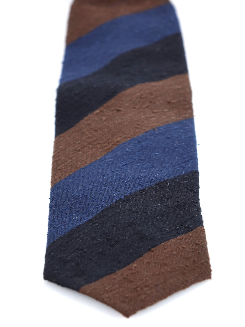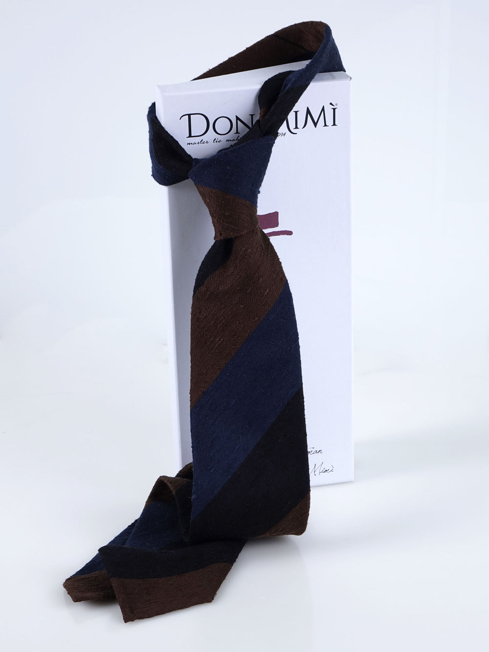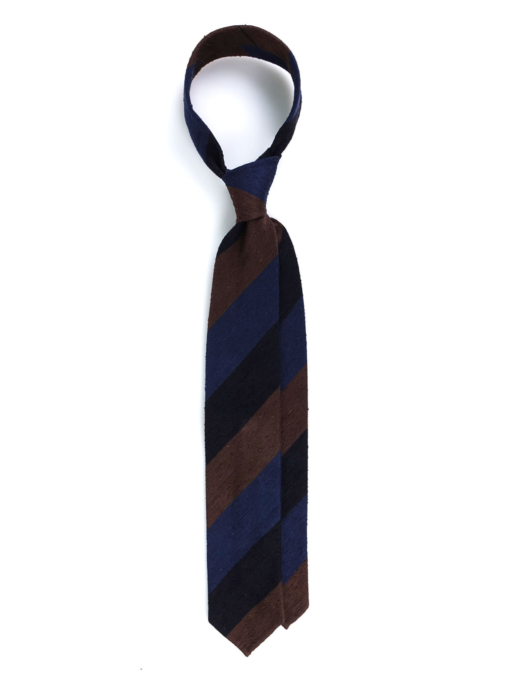 Cravatta 3 pieghe sfoderata blu/marrone in seta shantung TRIGA