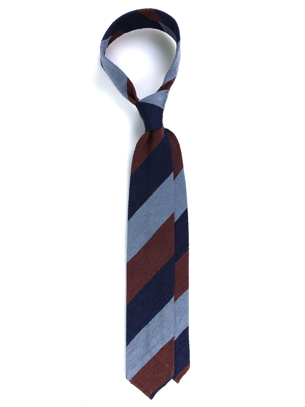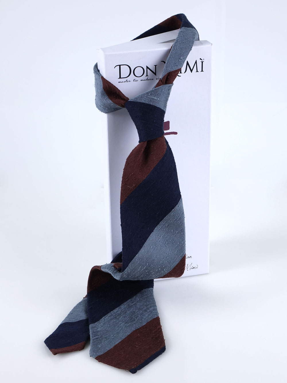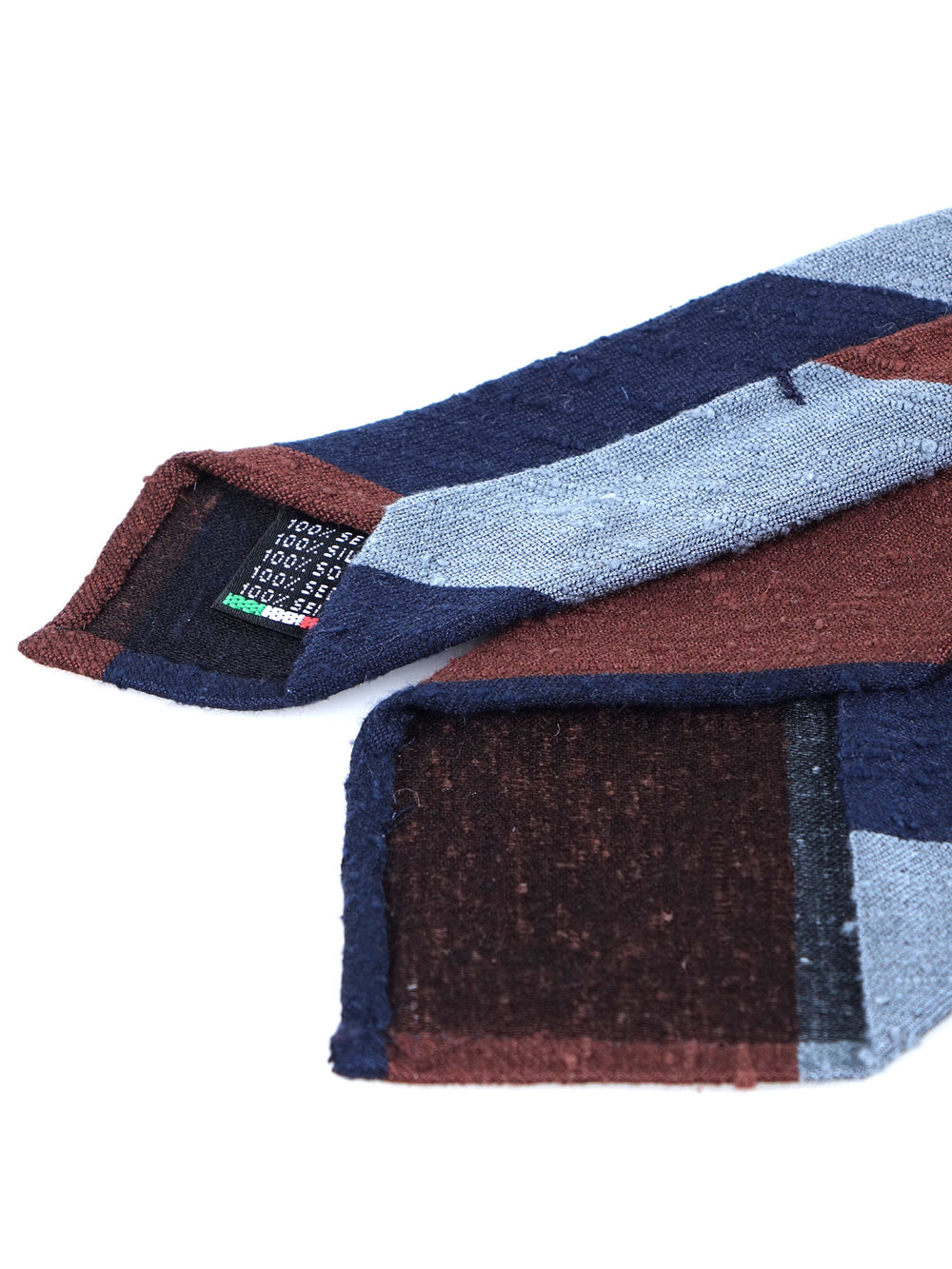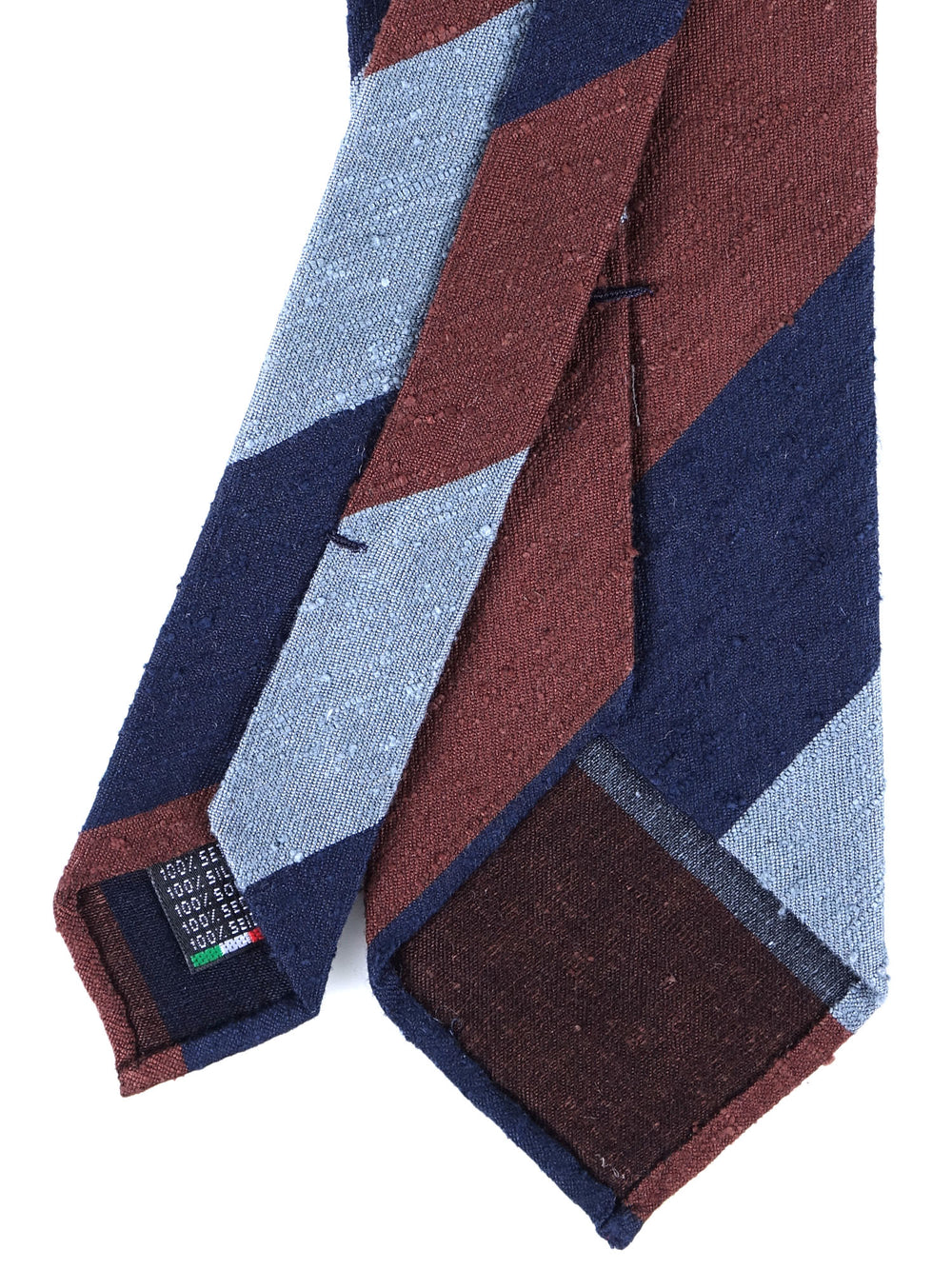 Cravatta 3 pieghe sfoderata blu/marrone in seta shantung TRIGA