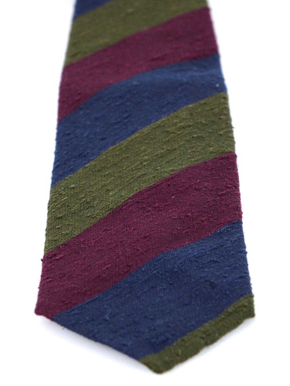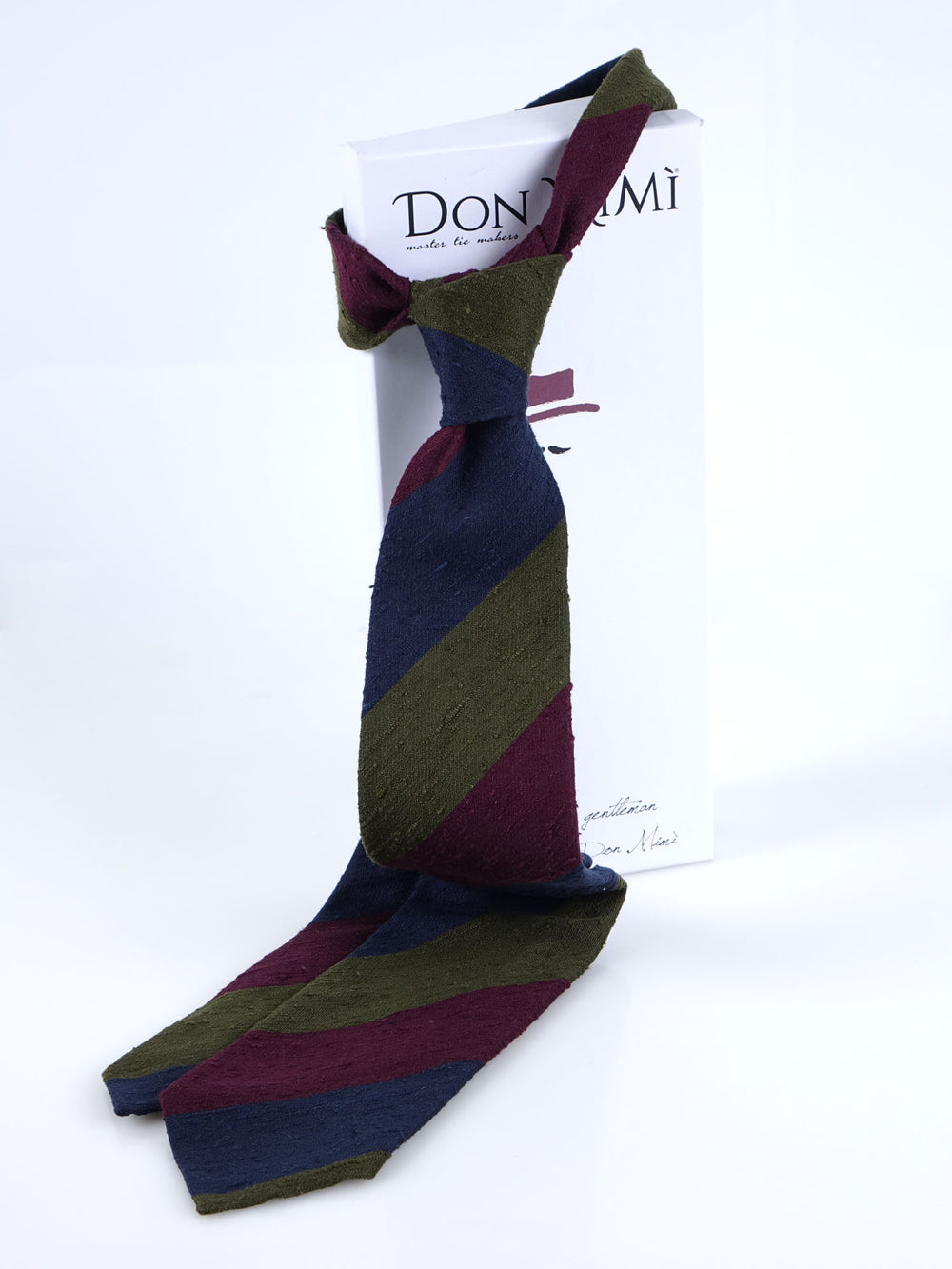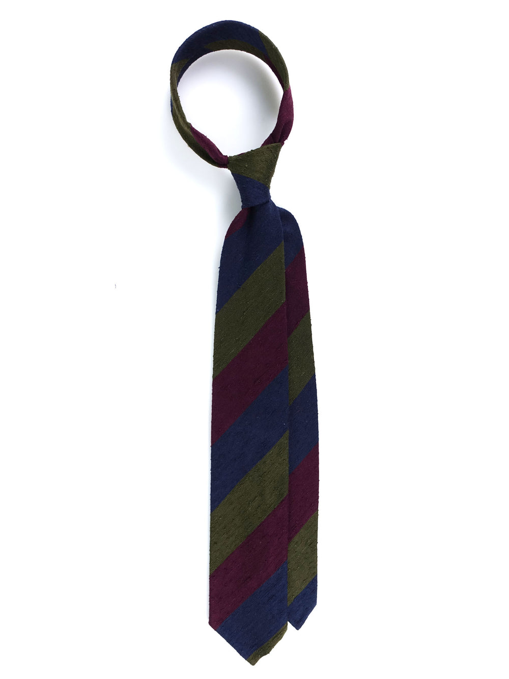 Cravatta 3 pieghe sfoderata blu/verde in seta shantung TRIGA