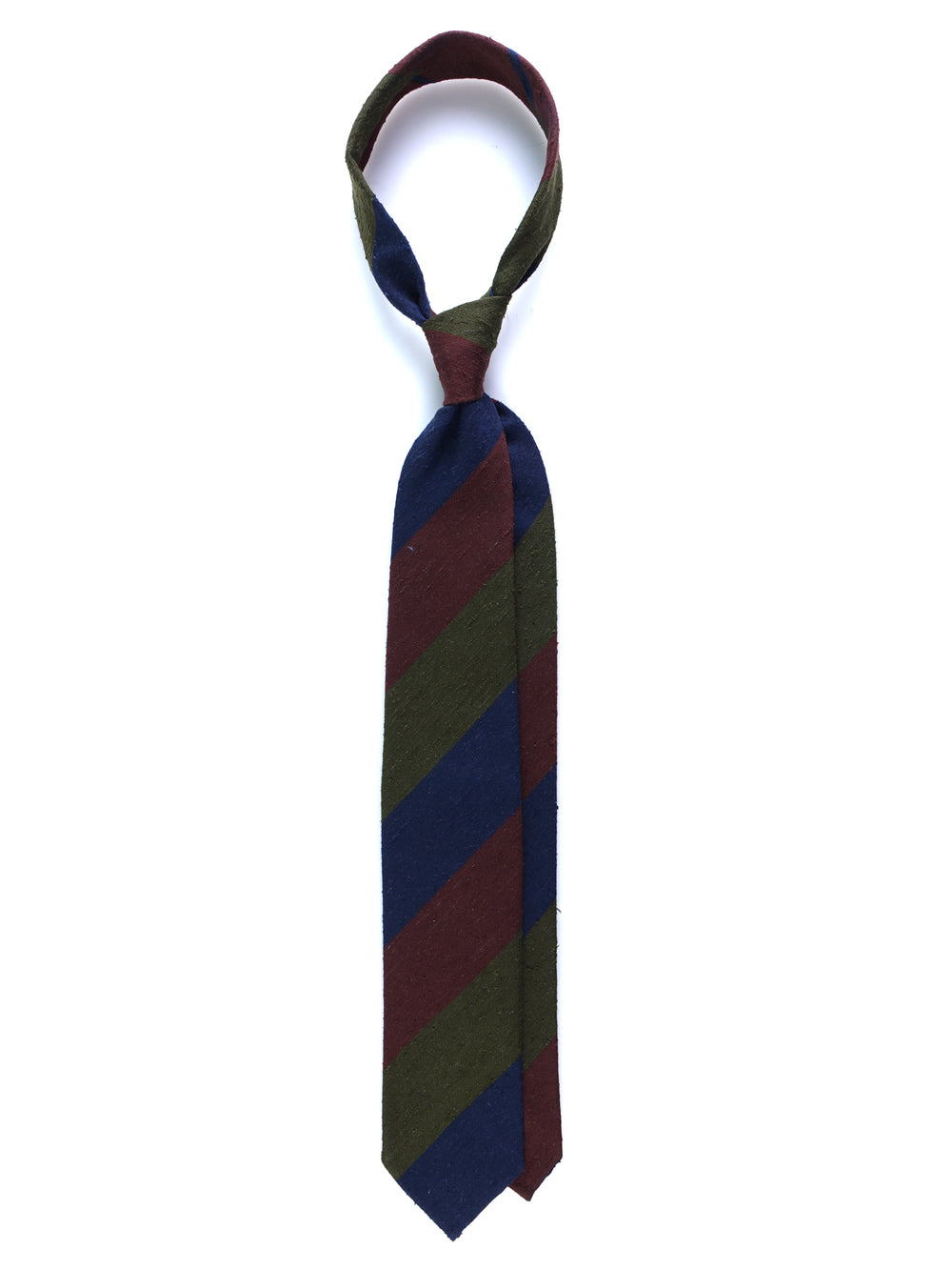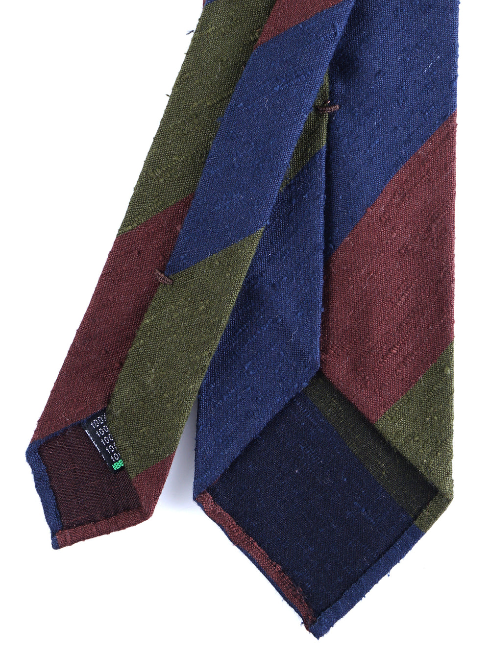 Cravatta 3 pieghe sfoderata verde/blu/marrone in seta shantung TRIGA