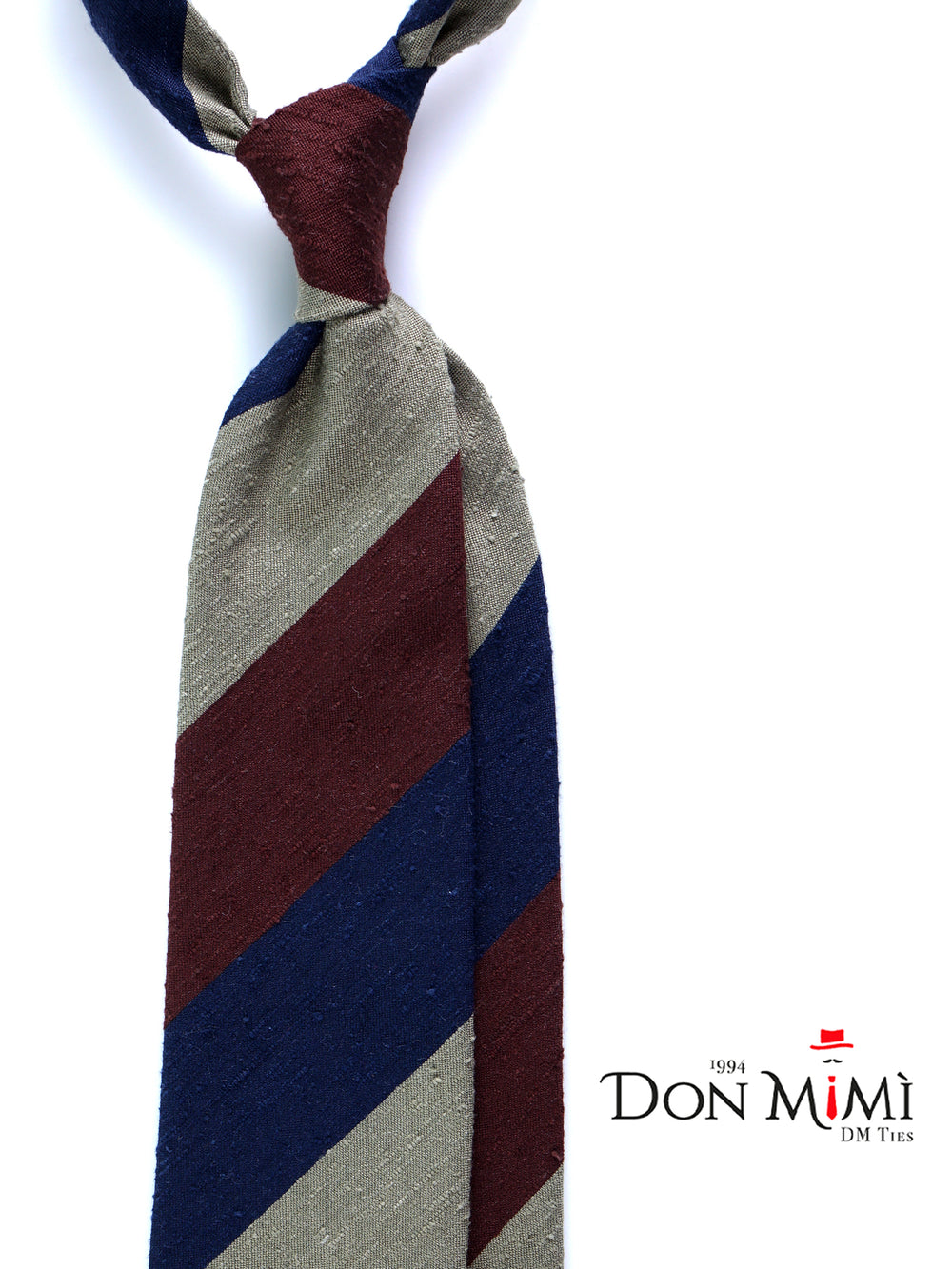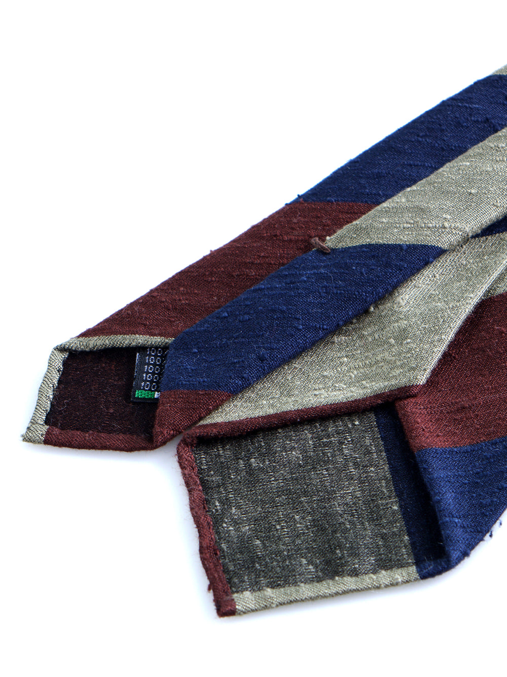 Cravatta 3 pieghe sfoderata verde chiaro/blu/marrone in seta shantung TRIGA