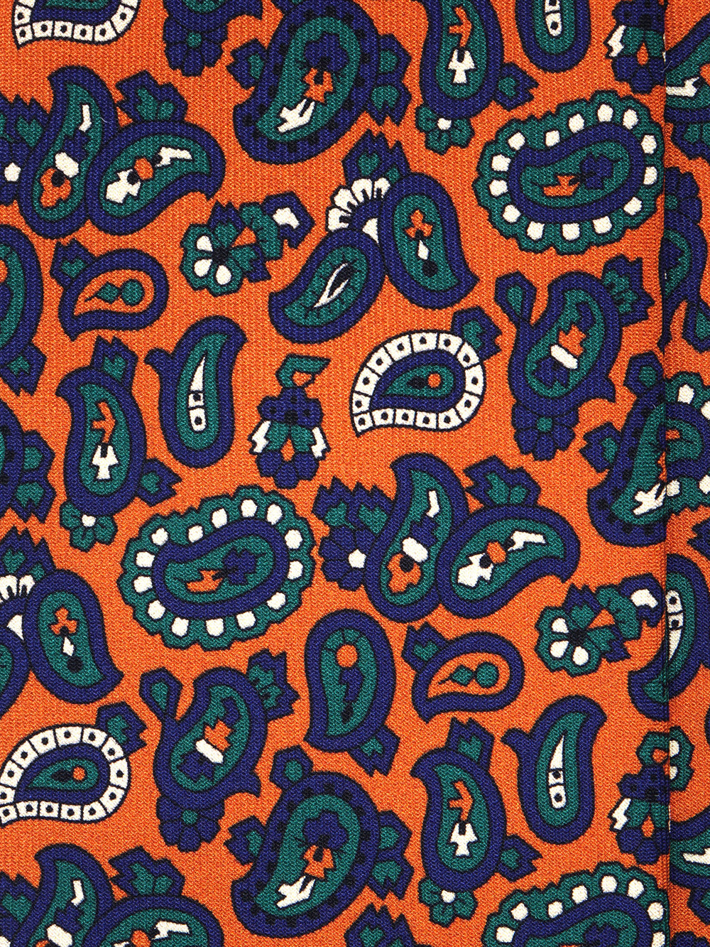 Fondo arancione con disegni cashmere in verde, blu e bianco