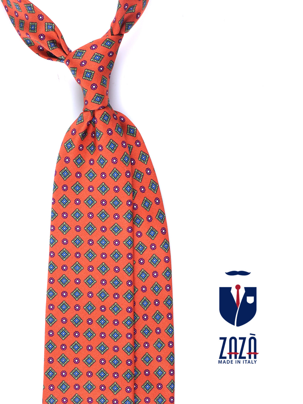 Questa cravatta è un'iniezione di pura energia stilistica, un pezzo forte della collezione Autunno/Inverno per l'uomo che non ha paura di essere notato. Il suo cuore pulsante è il colore: un arancione vibrante e audace, su cui fiorisce una fantasia che dialoga con note di verde, blu e magenta. Realizzata in una preziosa saia di seta, questa cravatta è pensata per l'uomo che vive lo stile come una forma d'arte, un'espressione di sé.