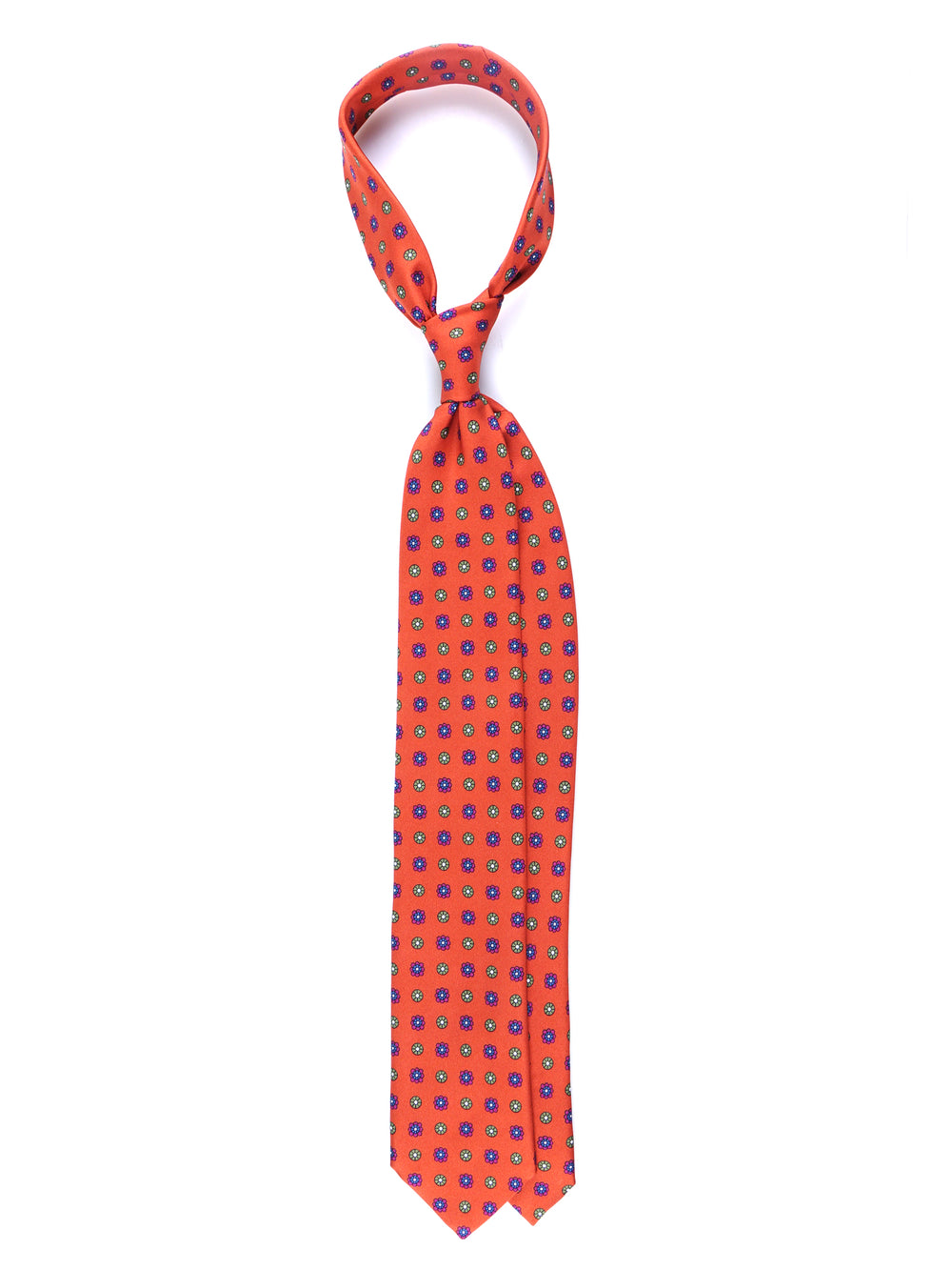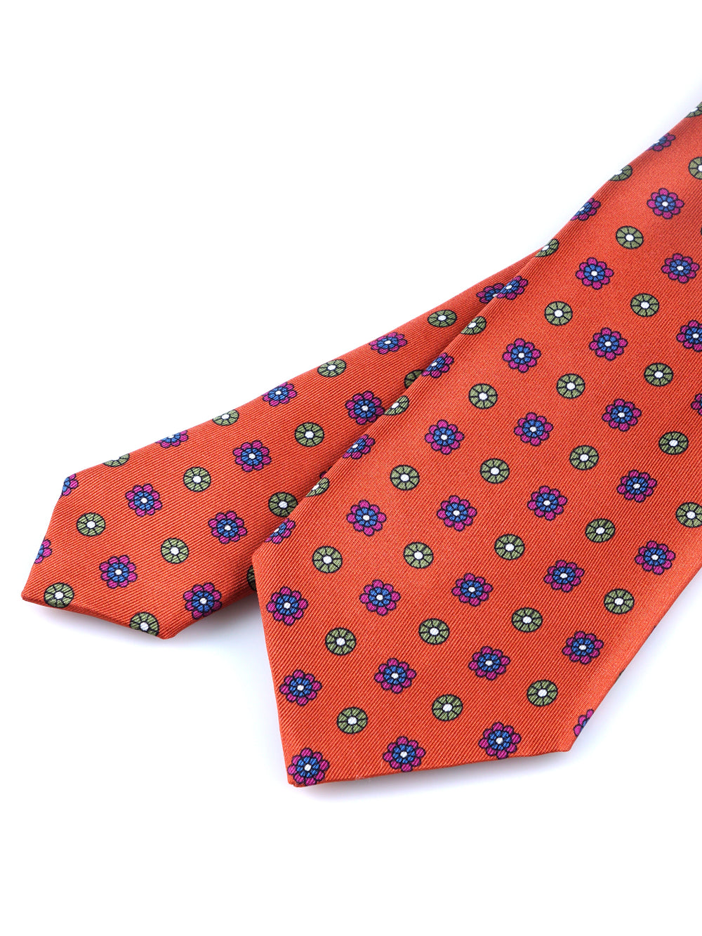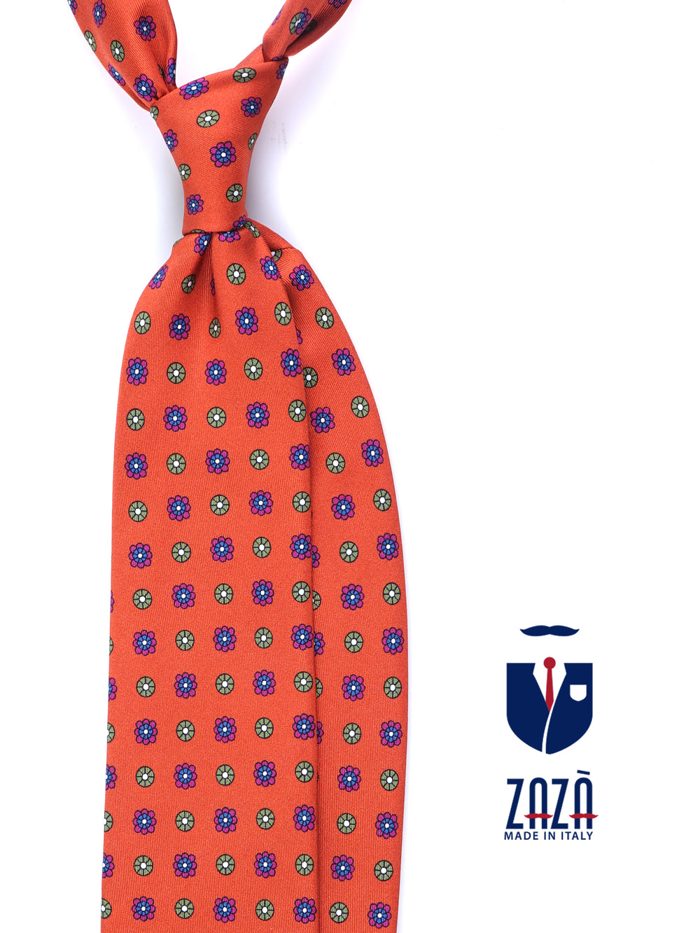 Un inno all'eleganza solare, questa cravatta ZAZÀ è un accessorio per l'uomo che ama esprimere il proprio stile con audacia e raffinatezza. Realizzata in pregiata seta stampata dalla mano liscia e luminosa, si distingue per il suo vibrante fondo arancio bruciato, una tela perfetta per un dialogo cromatico sofisticato. Il micro-motivo floreale unisce il blu royal, il magenta e il verde salvia, creando un pezzo che non passa inosservato ma che mantiene sempre un'eleganza impeccabile, firmata ZAZÀ Made in Italy.