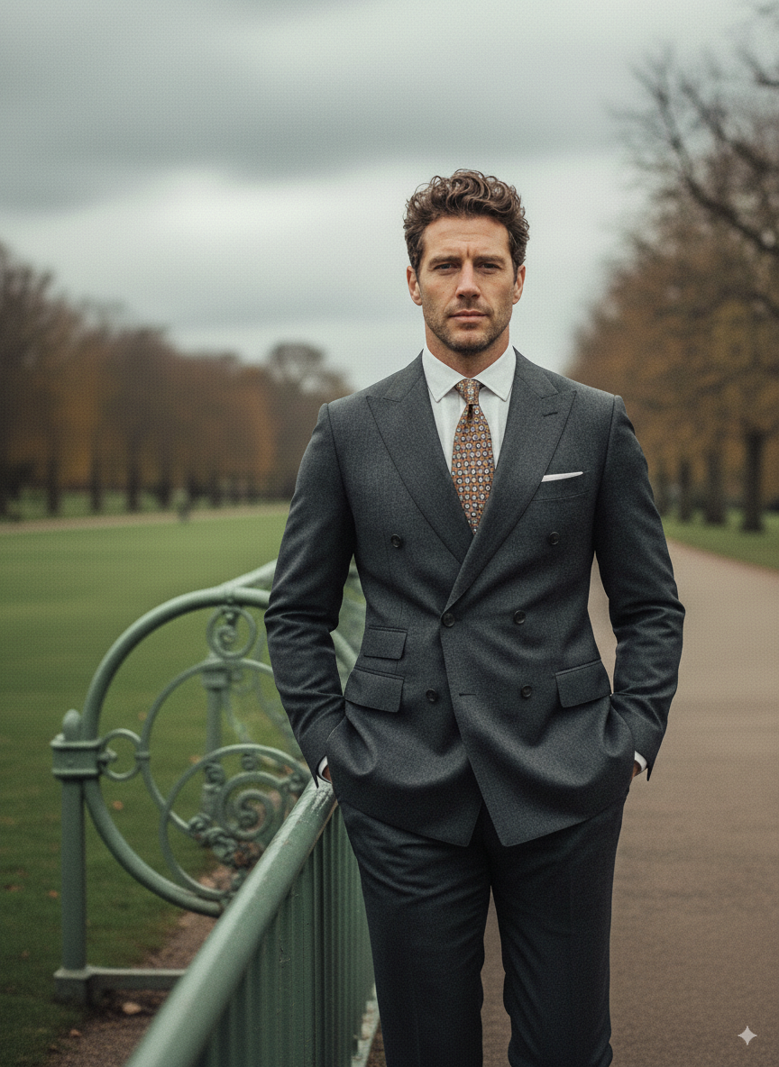 Per portare un tocco di calore e cultura nel guardaroba da ufficio. L'abbinamento più sofisticato è con un abito blu navy: il contrasto tra il blu freddo e il cammello caldo è un classico dell'eleganza maschile. Ottima anche su un abito in flanella grigio medio. Indossala con una camicia azzurra chiara. Come fazzoletto da taschino, una seta blu con un micro-pois o una fantasia cachemire tono su tono sarà un dettaglio impeccabile. Le bretelle in elastico blu scuro sono una scelta funzionale e di classe.