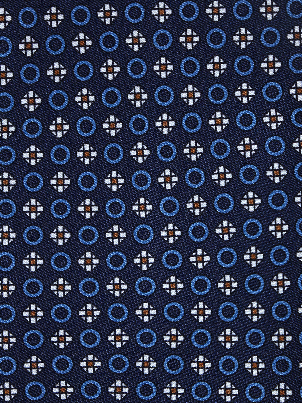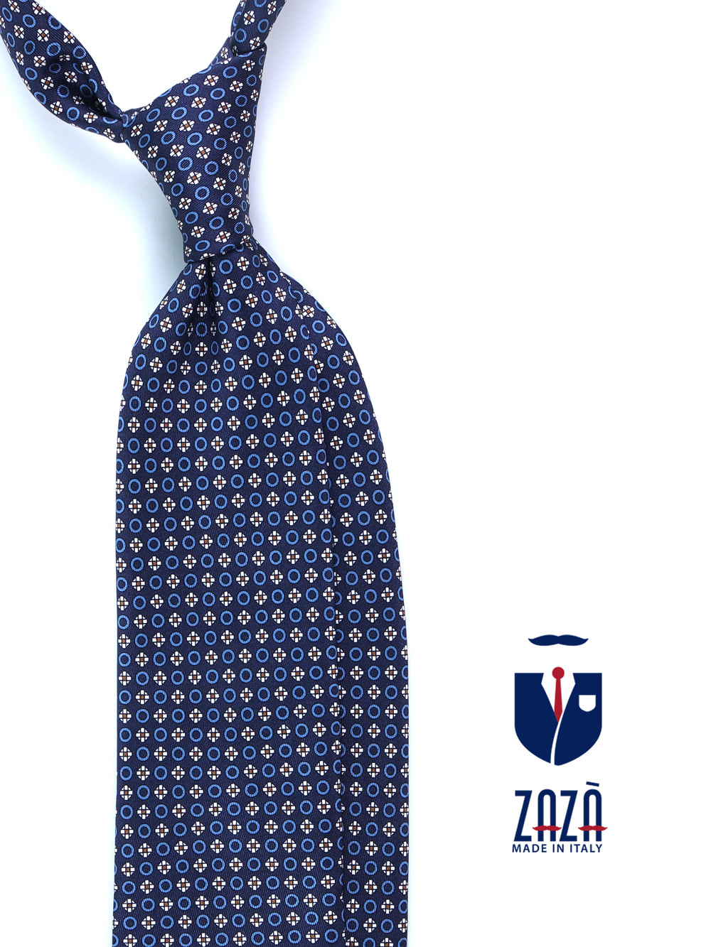 Un pilastro di versatilità ed eleganza, reinterpretato con il gusto e la qualità ZAZÀ Made in Italy. Questa cravatta è realizzata in pregiata seta stampata, un tessuto dalla mano liscia e dalla lucentezza discreta che garantisce un nodo perfetto. Il fondo blu navy, classico e autorevole, è la base per un raffinato micro-motivo geometrico che unisce la freschezza dell'azzurro, il calore del marrone e la purezza del bianco, creando un equilibrio visivo perfetto. È l'accessorio chiave per l'uomo che cerca un'eleganza impeccabile per ogni occasione.
