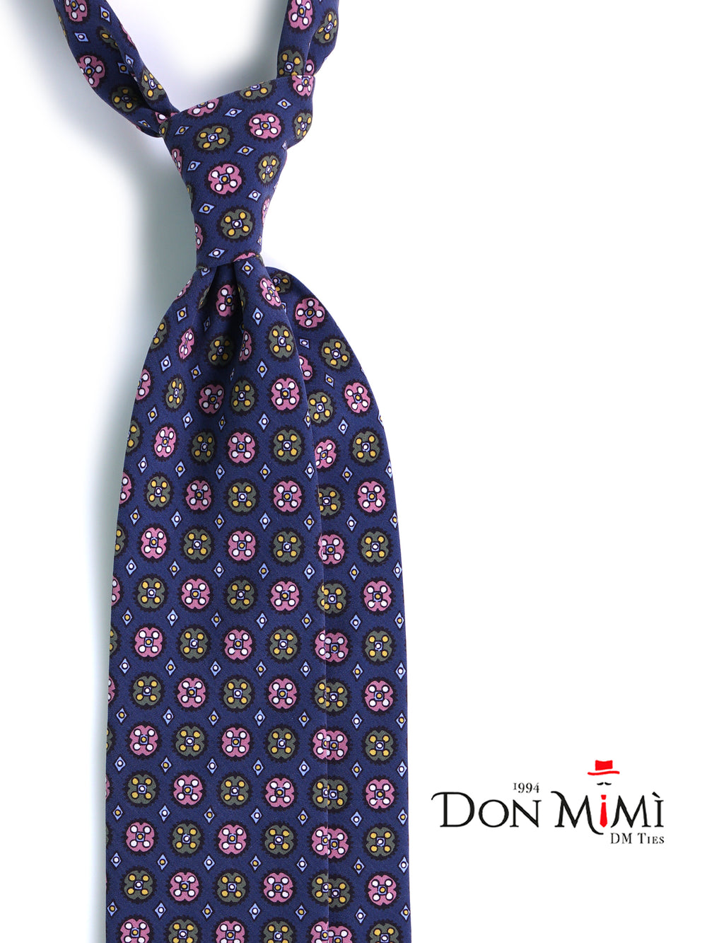 Un pezzo di grande personalità per l'uomo che non teme il colore e lo usa come strumento di espressione. Questa cravatta Don Mimì è realizzata in Seta Madder, un tessuto per intenditori la cui finitura gessosa e opaca smorza la vivacità dei colori, conferendo loro una profondità e un'eleganza uniche. La base in un ricercato blu polvere è la tela per un dialogo cromatico insolito e affascinante tra il rosa antico, il verde salvia e piccoli accenti di giallo. È un accessorio che cattura lo sguardo con cultura e raffinatezza, mai con sfrontatezza.