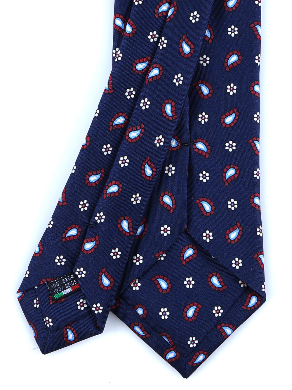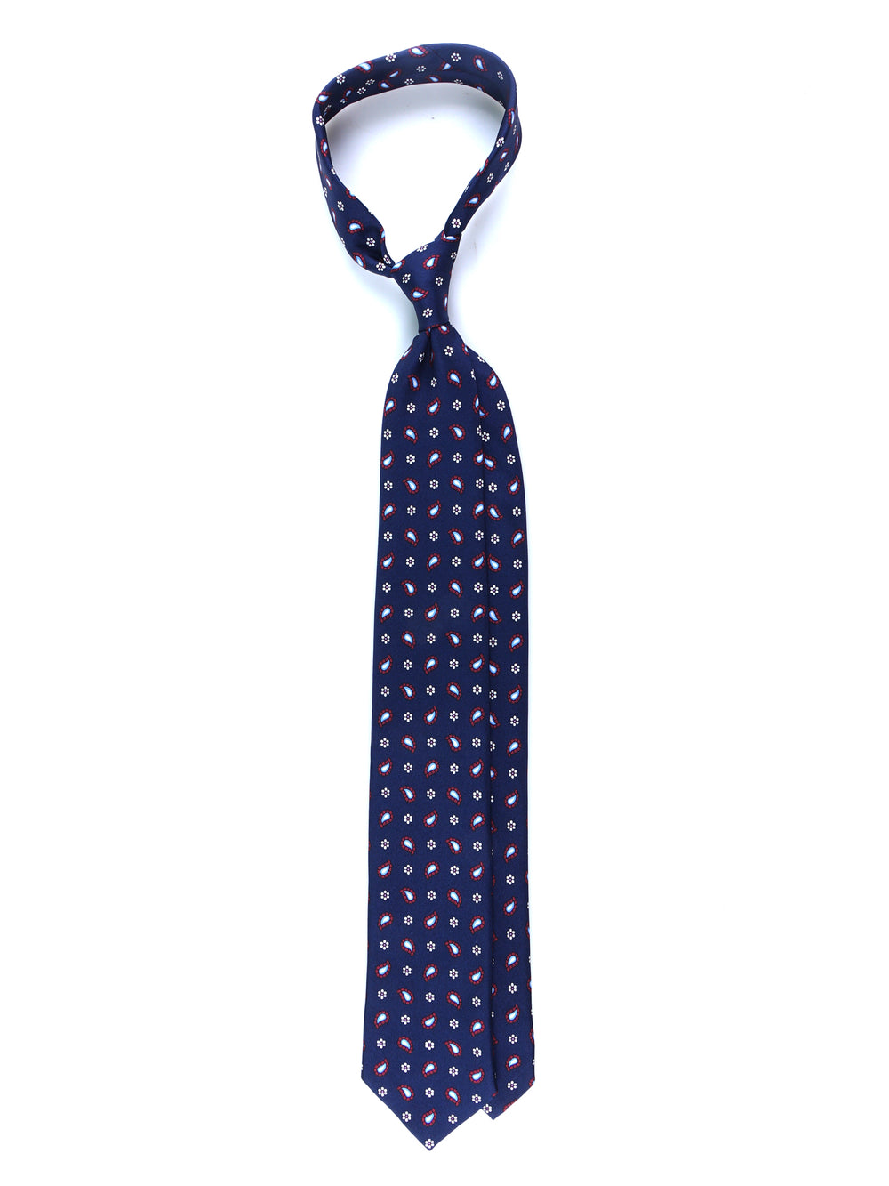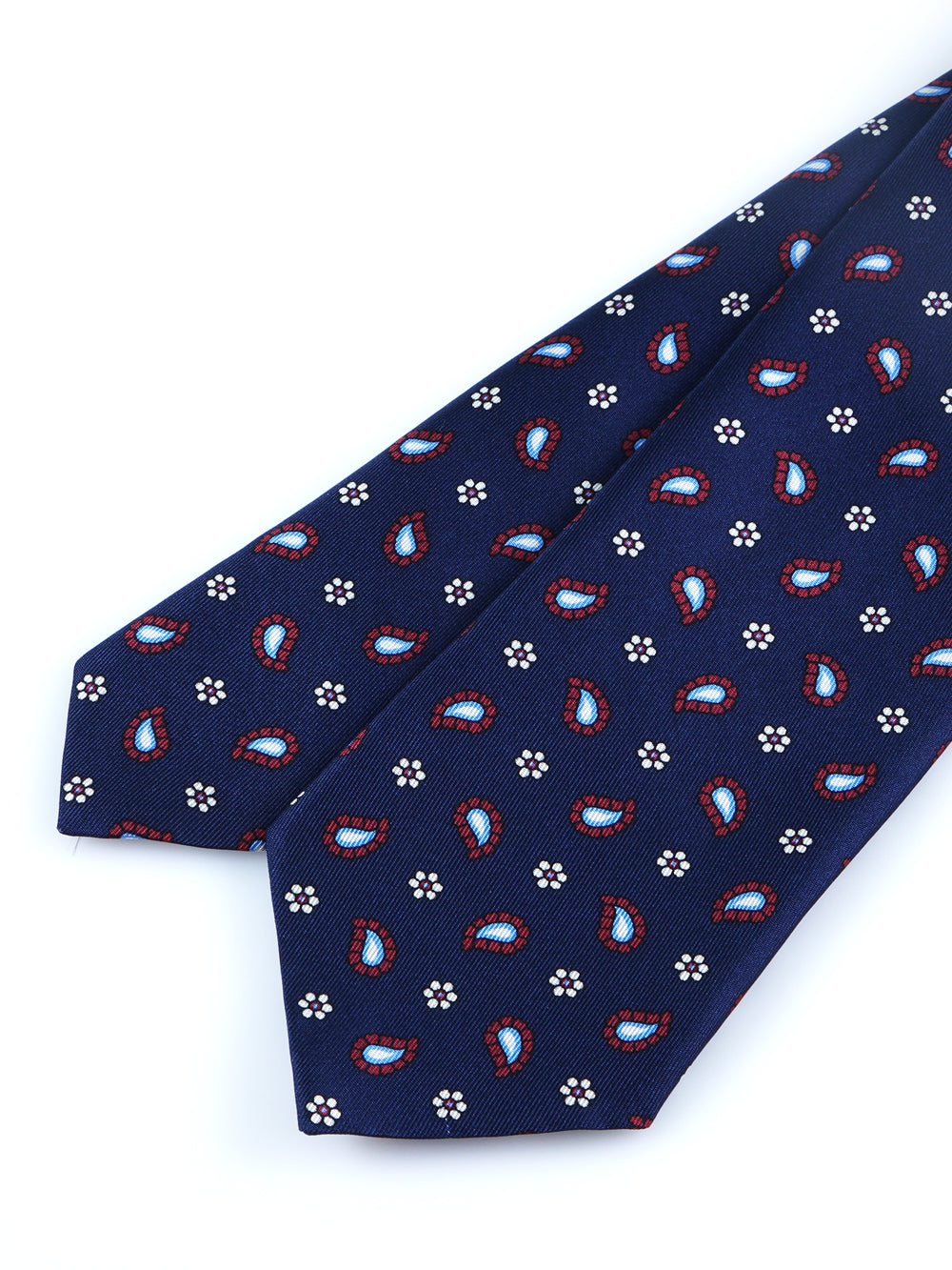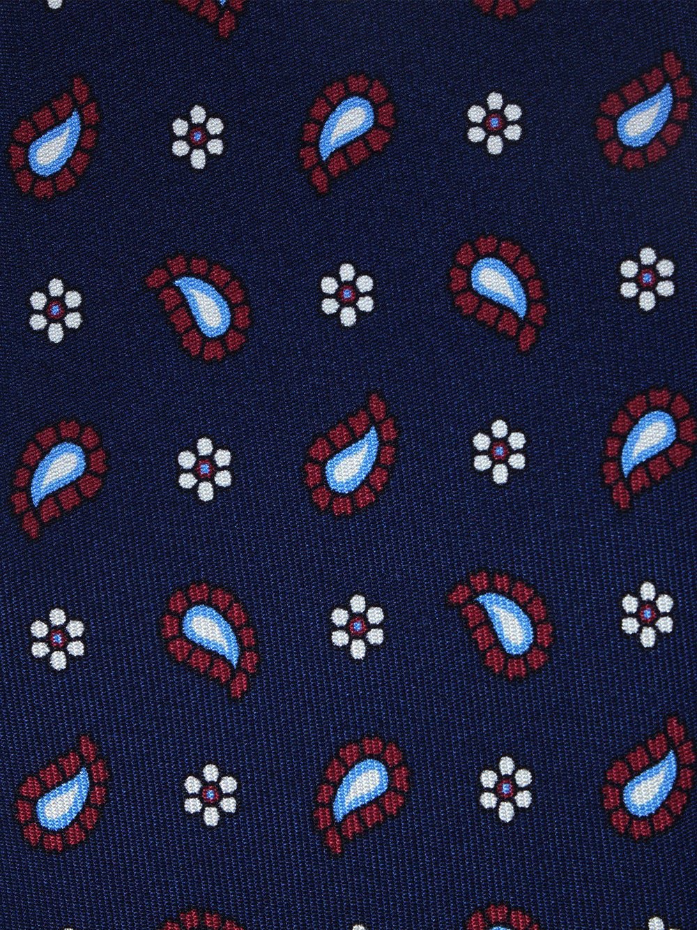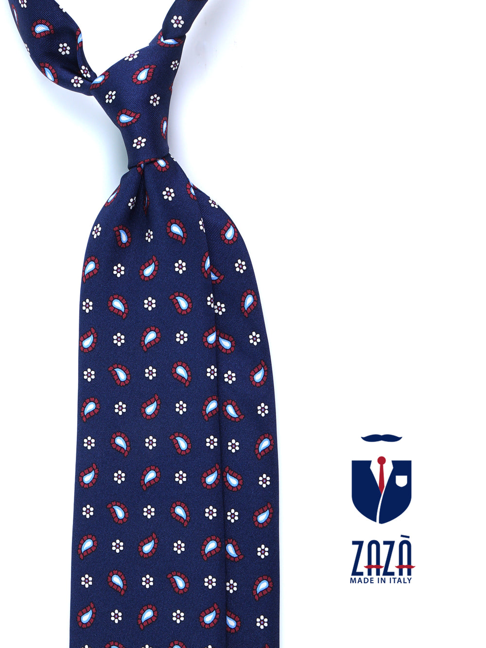 Un pilastro di eleganza senza tempo, questa cravatta ZAZÀ è un accessorio essenziale nel guardaroba di ogni uomo. Realizzata in pregiata seta stampata, si distingue per il suo fondo blu navy, classico e autorevole. Su questa tela si sviluppa un raffinato micro-disegno che alterna un cachemire stilizzato, con dettagli bordeaux, a piccoli fiori bianchi con accenti azzurri. È la cravatta perfetta per l'uomo che cerca una versatilità impeccabile, firmata ZAZÀ Made in Italy.
