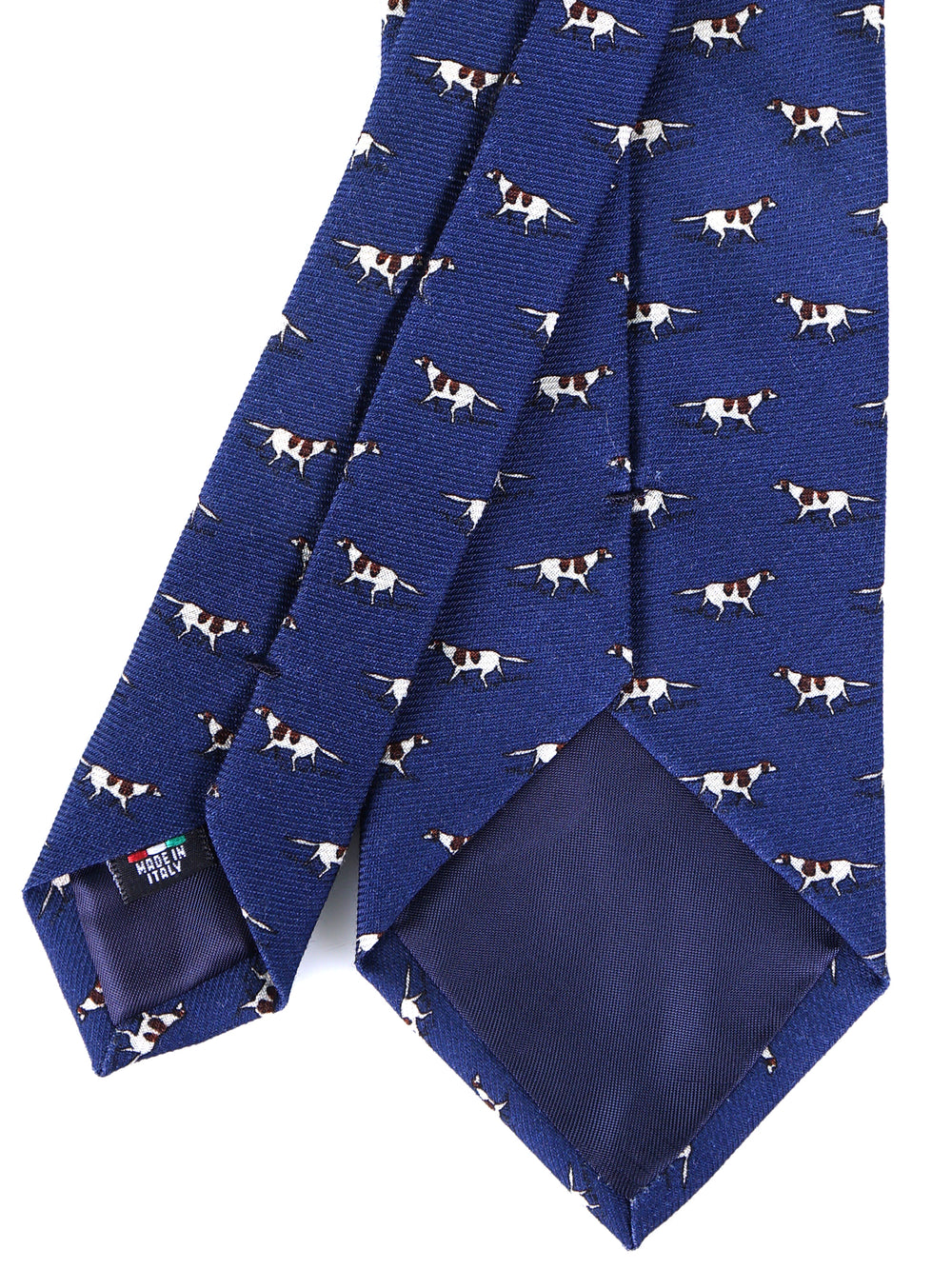 Il fascino della caccia alla volpe e della tradizione aristocratica. Questa cravatta Don Mimì è un pezzo da collezione per gli amanti dello stile "Country Chic". Realizzata in preziosa lana Challis inglese, celebre per la sua mano vellutata e la finitura opaca, presenta un iconico motivo a cani segugio su fondo blu. Un accessorio che evoca le atmosfere dei club privati, delle tenute di campagna e di una vita vissuta all'insegna dell'eleganza rilassata ma rigorosa.