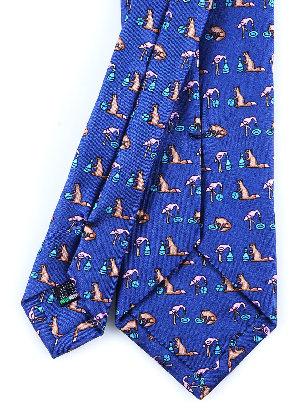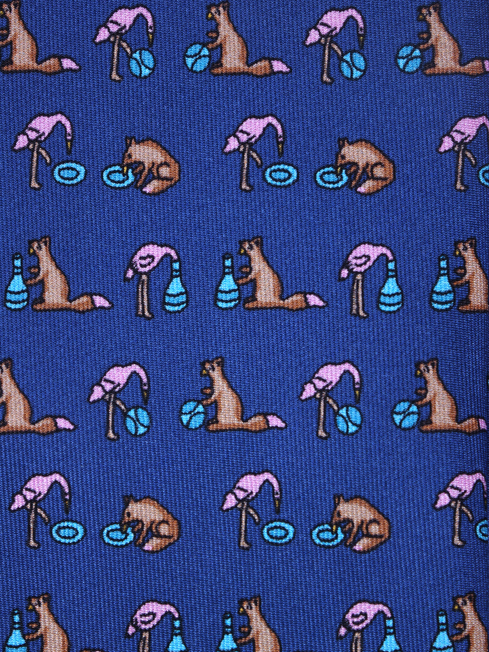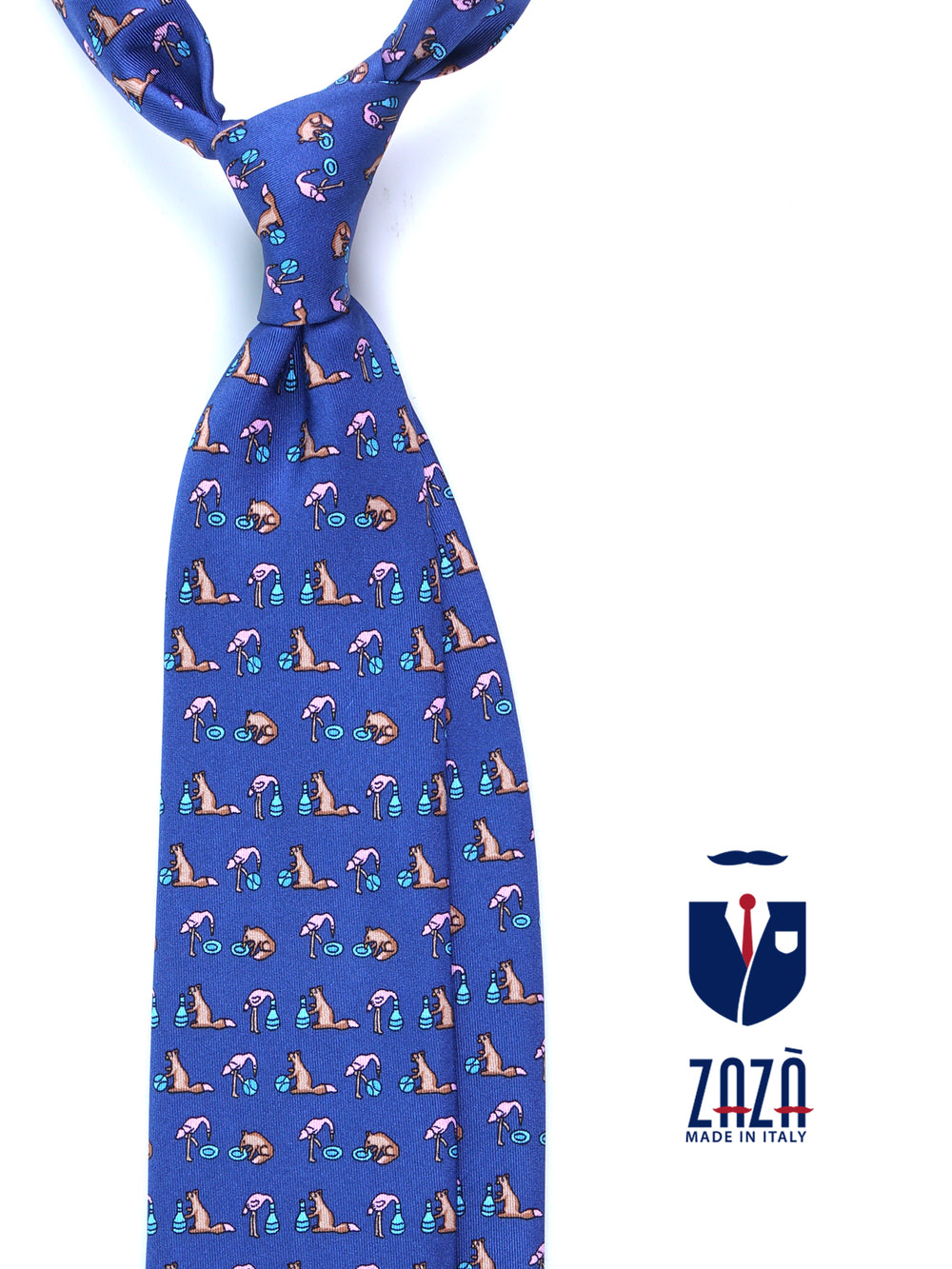Un tocco di ironia per ravvivare il guardaroba della stagione fredda. Questa cravatta "conversazionale" della collezione Autunno/Inverno ZAZÀ è un accessorio per l'uomo che non prende la moda troppo sul serio, ma non rinuncia mai alla qualità. Realizzata in pregiata seta stampata, si distingue per il suo design unico: su un classico fondo blu si alternano fenicotteri rosa in posa yoga e simpatiche volpi che si rilassano con un drink. È un pezzo che esprime una personalità sicura e un'eleganza spiritosa, firmata ZAZÀ Made in Italy.