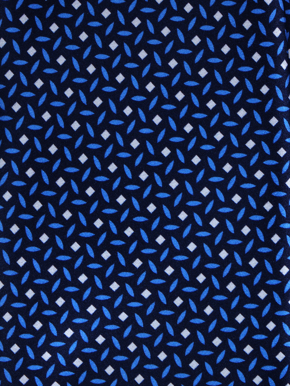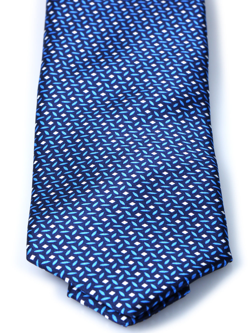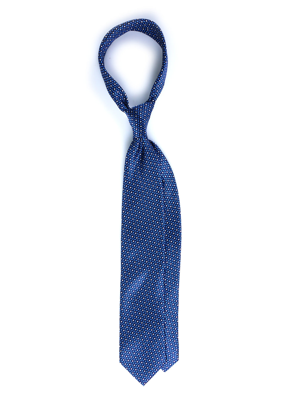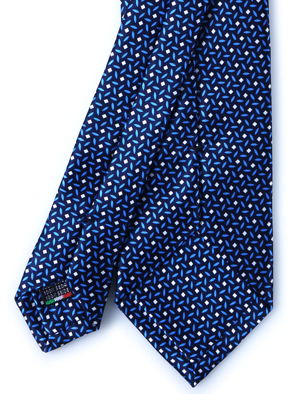 Questa cravatta è un inno alla purezza della seta, un pezzo chiave della collezione Autunno/Inverno per l'uomo che apprezza il lusso materico. Realizzata in un prezioso Raso di Seta, la sua superficie liscia e luminosa cattura la luce in modo unico, donando una profondità cromatica eccezionale. Il disegno geometrico, un "falso unito" nei toni classici del blu e del bianco, la rende un passe-partout di lusso, incredibilmente versatile e sempre appropriato.