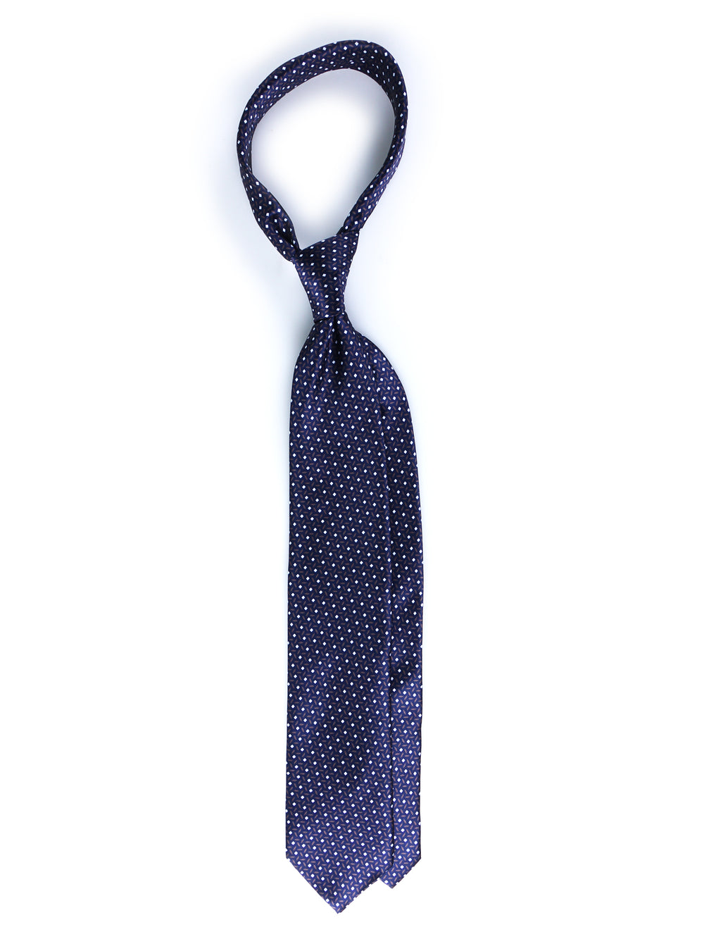Questa cravatta è un inno alla purezza della seta, un pezzo chiave della collezione Autunno/Inverno per l'uomo che apprezza il lusso materico. Realizzata in un prezioso Raso di Seta, la sua superficie liscia e luminosa cattura la luce in modo unico, donando una profondità cromatica eccezionale. Il disegno geometrico, un "falso unito" nei toni classici del blu e del bianco, la rende un passe-partout di lusso, incredibilmente versatile e sempre appropriato.