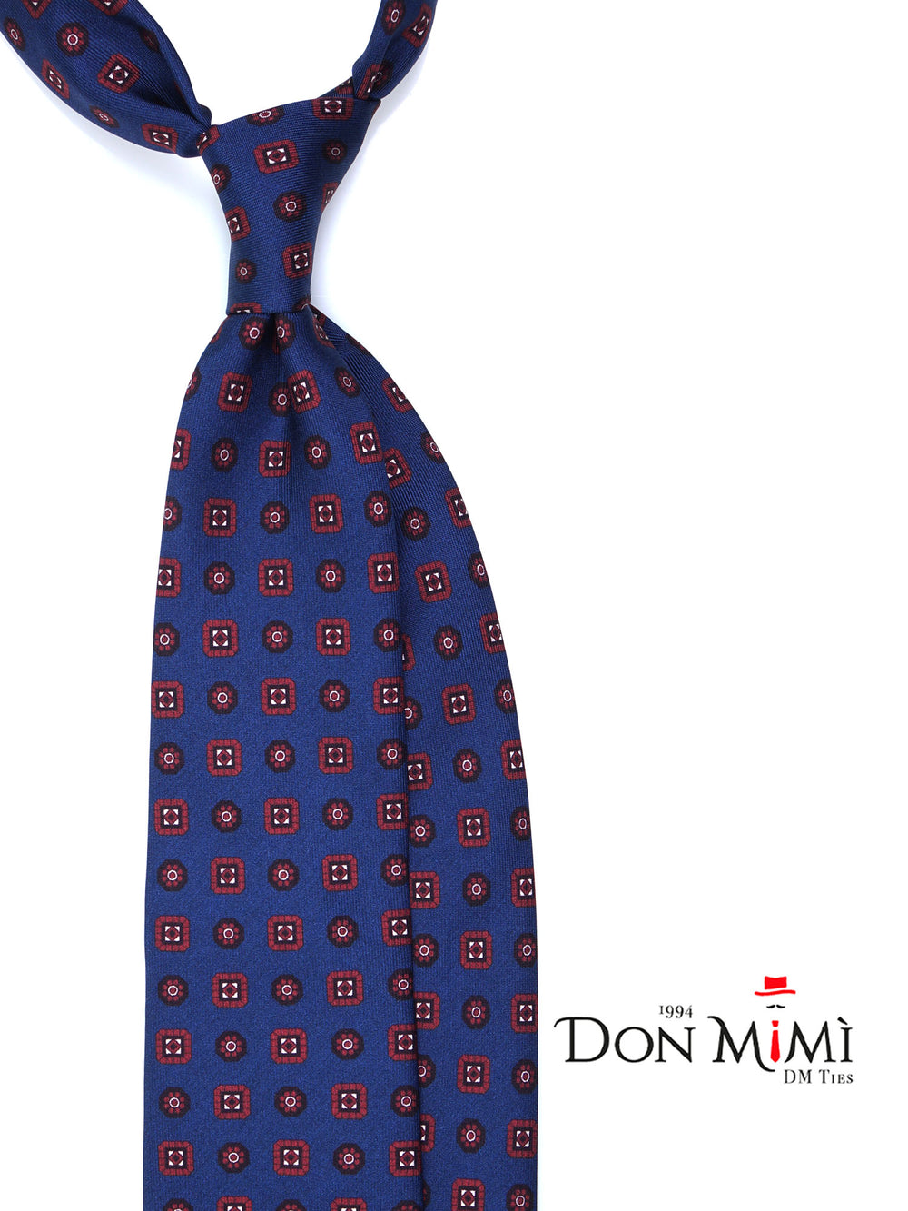 Cravatta blu/ruggine 7 pieghe STEFANIA in seta stampata lusso