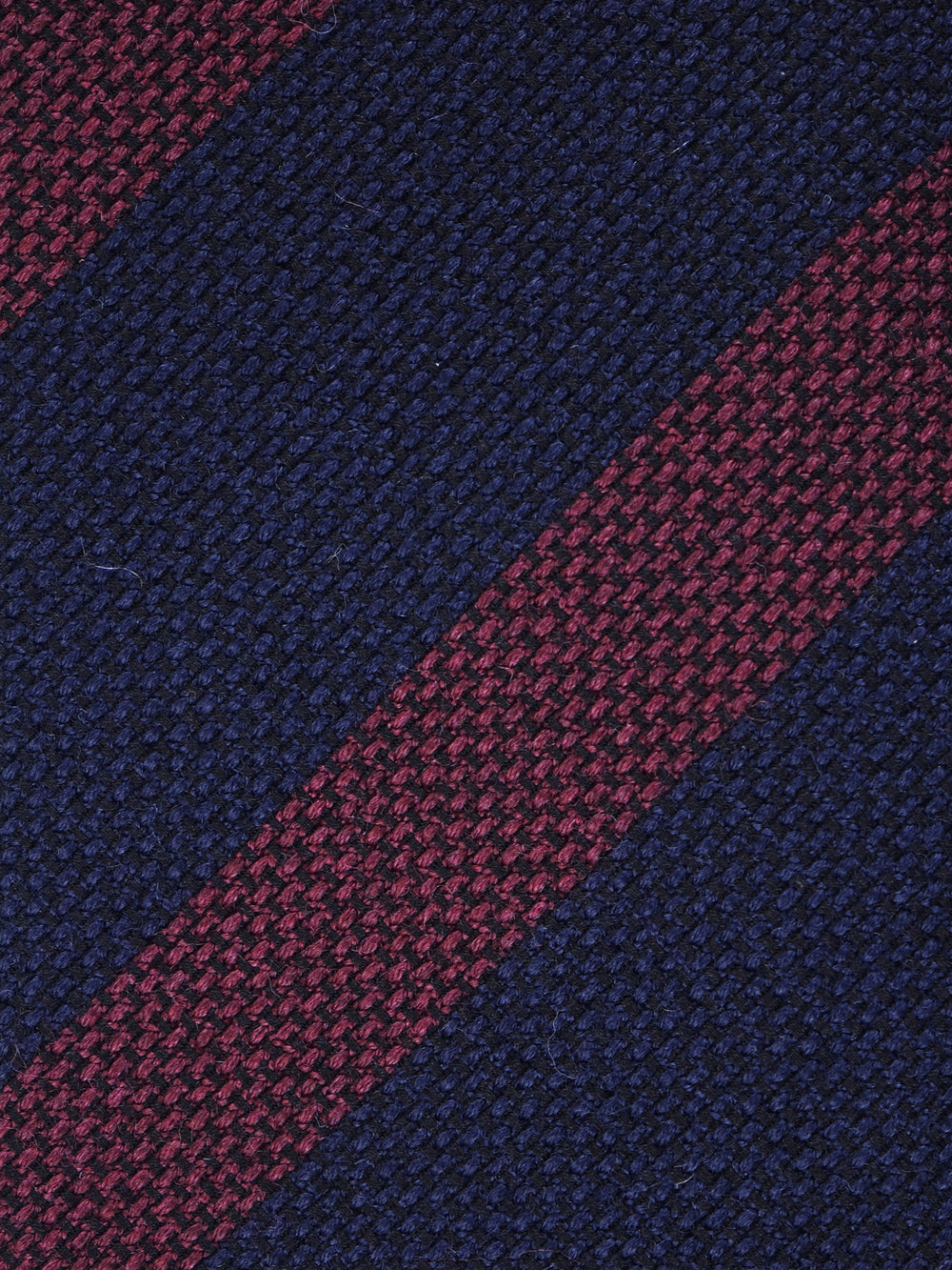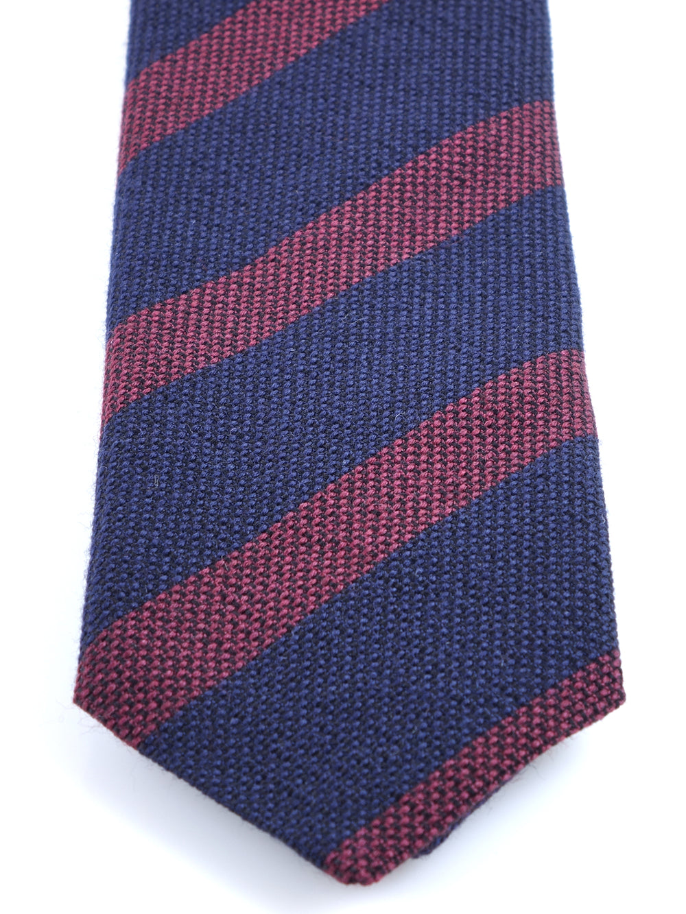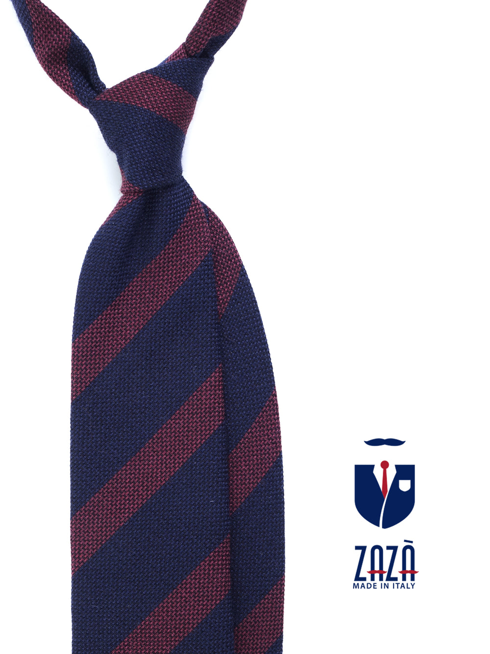 Questa cravatta ZAZÀ incarna una delle combinazioni cromatiche più autorevoli e storiche del vestire maschile: il blu navy e il bordeaux. La scelta di un blend in lana e seta conferisce all'accessorio una dimensione tattile e visiva superiore. La lana dona corpo e una profondità cromatica opaca, perfetta per assorbire la luce, mentre la seta introduce una nota di vibrante lucentezza. La texture, finemente operata, reinterpreta il classico disegno regimental con un'attitudine contemporanea e un tocco sartoriale inconfondibilmente italiano.