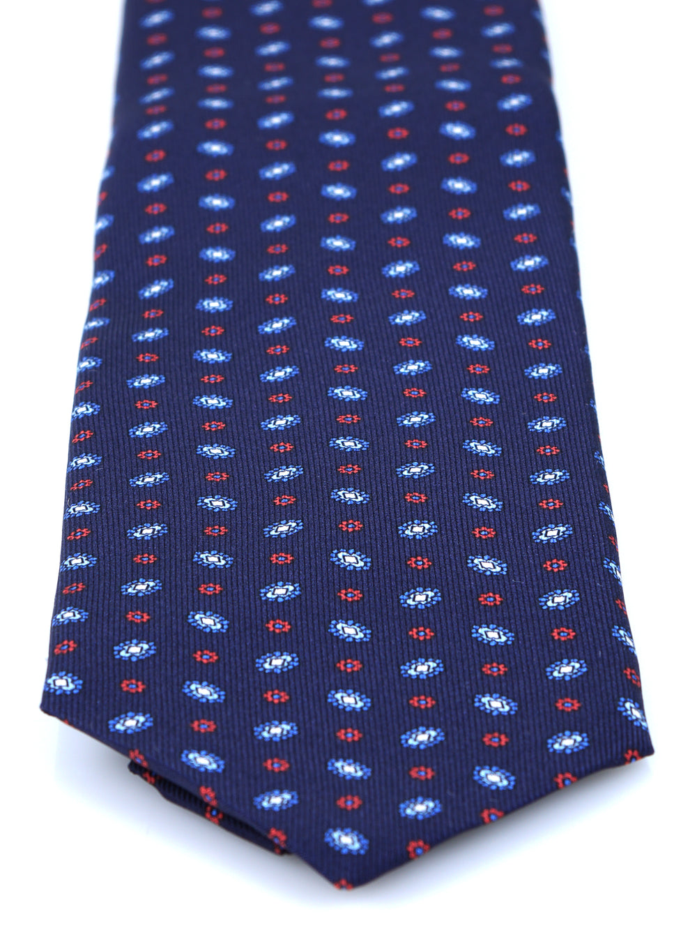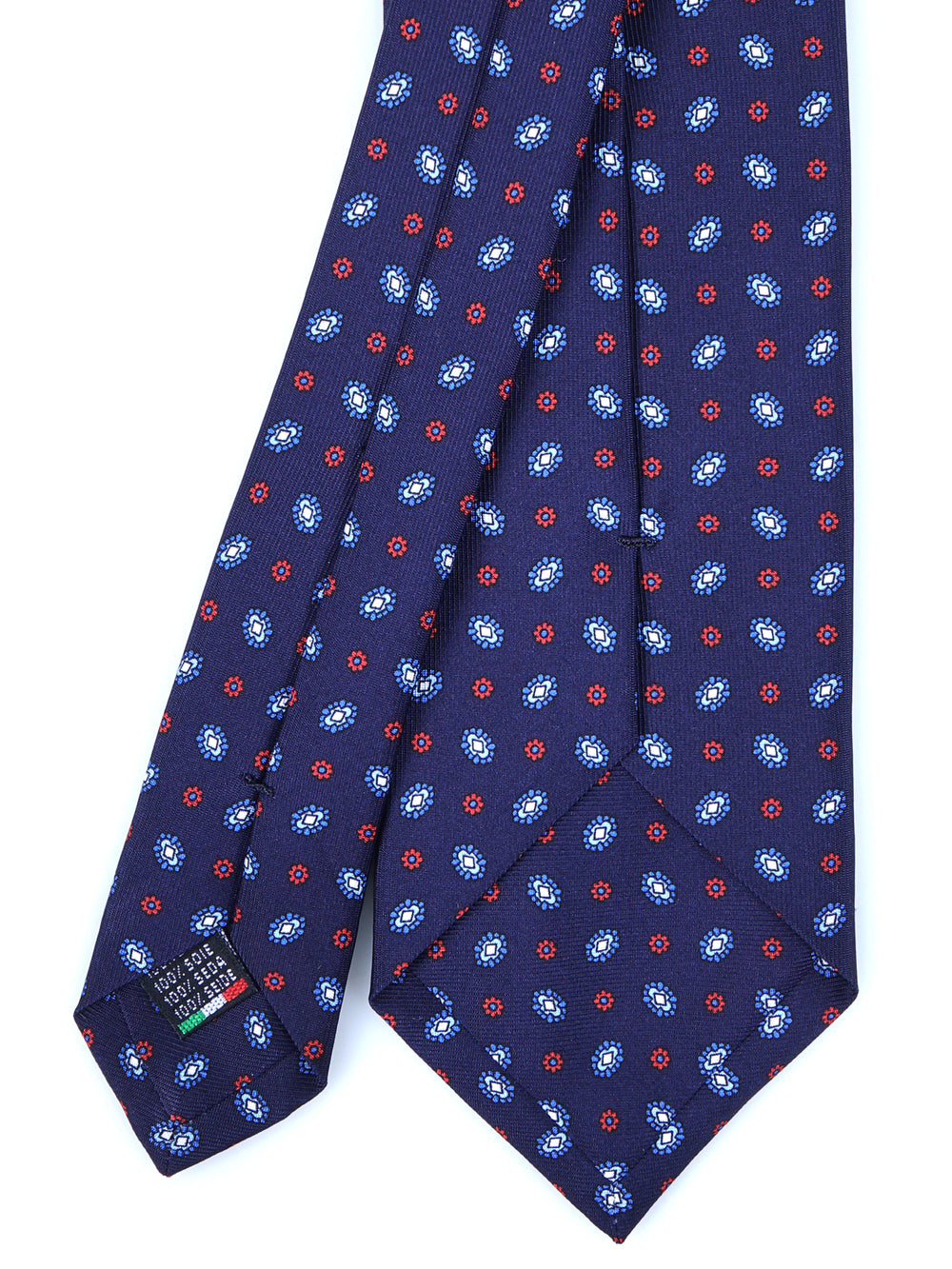 Questa cravatta in seta inglese stampata con fondo blu e micro-motivi è la scelta perfetta per l’uomo che ama lo stile classico con un tocco di personalità. Un accessorio che coniuga eleganza e versatilità.