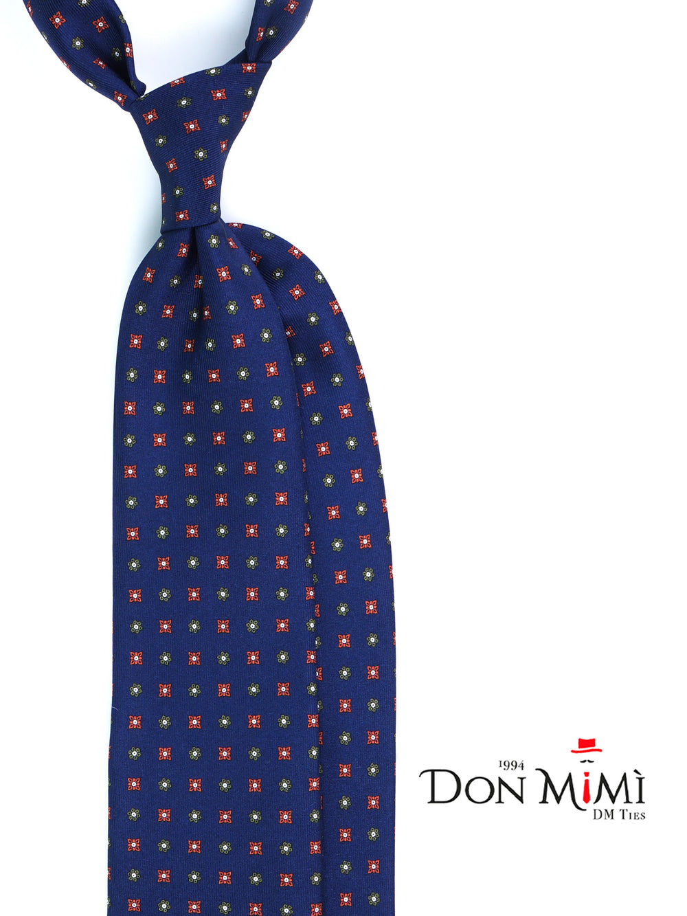 Cravatta blu scuro 7 pieghe NAPOLI in seta lusso stampata inglese