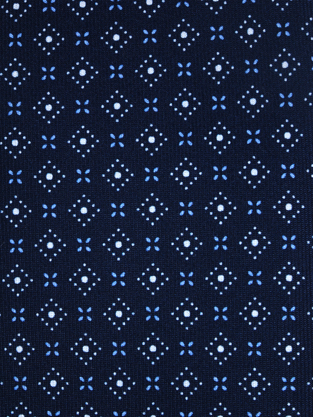 Colore: Fondo blu navy con micro-disegno floreale/geometrico bianco e azzurro