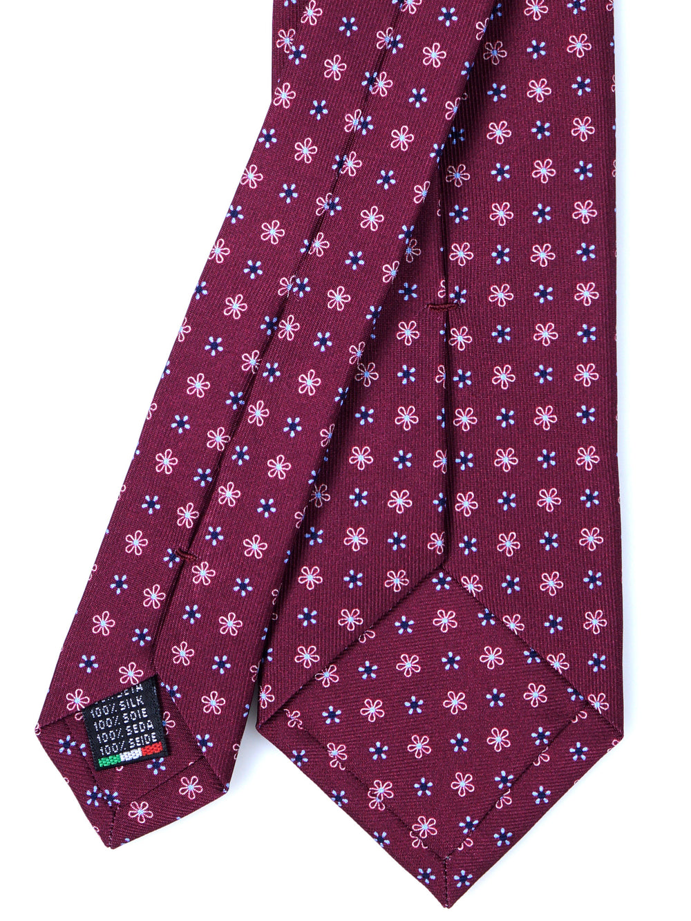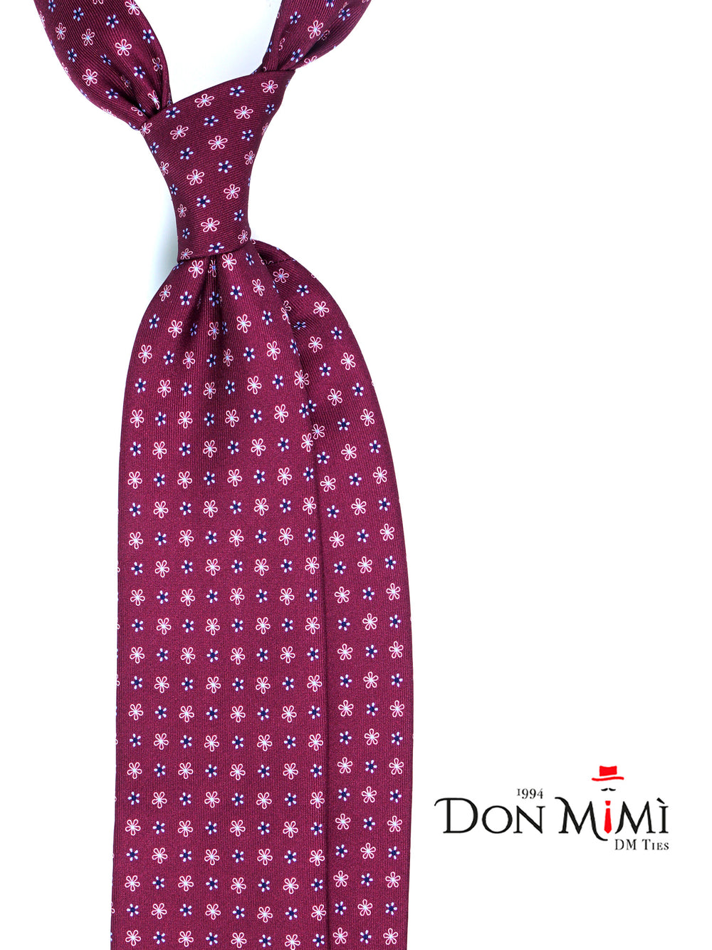 Questa cravatta è un pezzo forte della collezione Autunno/Inverno, pensata per l'uomo che vuole comunicare autorevolezza e raffinatezza. Il suo colore protagonista è un profondo e lussuoso Bordeaux, stampato su pregiata seta inglese per una resa cromatica impeccabile. La delicata fantasia floreale, con dettagli bianchi e blu navy, aggiunge un tocco di grazia a un accessorio potente, creando un equilibrio perfetto tra carattere e stile. La trama in saia di seta garantisce un nodo impeccabile e una mano consistente.