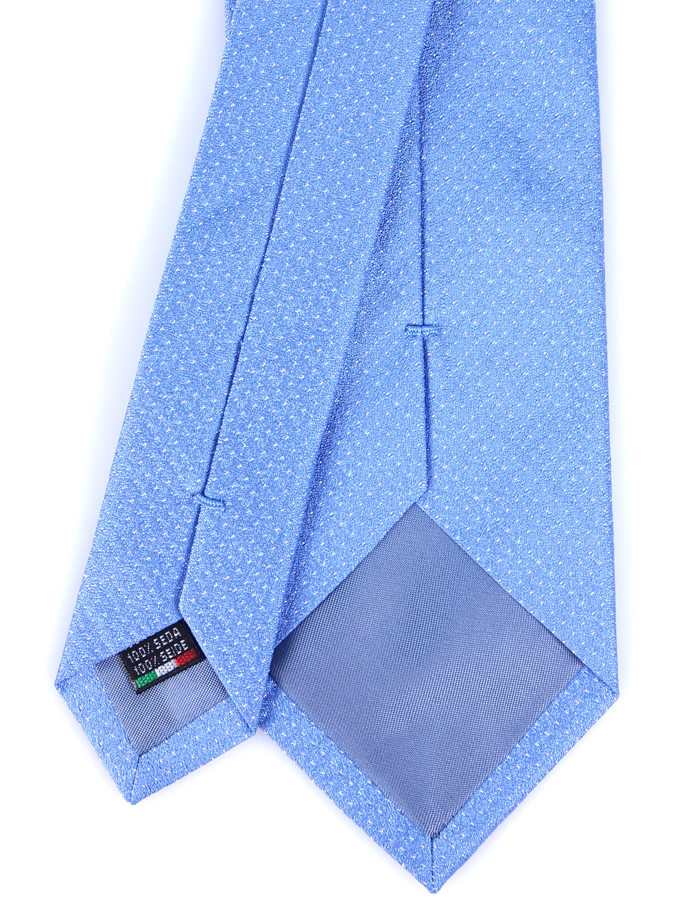 Un pilastro del guardaroba maschile, simbolo di un'eleganza classica e rassicurante. Questa cravatta è realizzata in pregiata seta jacquard, una lavorazione che crea il disegno direttamente nel tessuto, conferendo una texture tridimensionale e una mano corposa. Il fondo, in un luminoso color celeste, è punteggiato da un finissimo motivo a micro-pois bianchi, creando un effetto visivo discreto e di grande raffinatezza. È un accessorio incredibilmente versatile, un vero passe-partout che accompagna l'uomo con stile impeccabile dal business al tempo libero.
