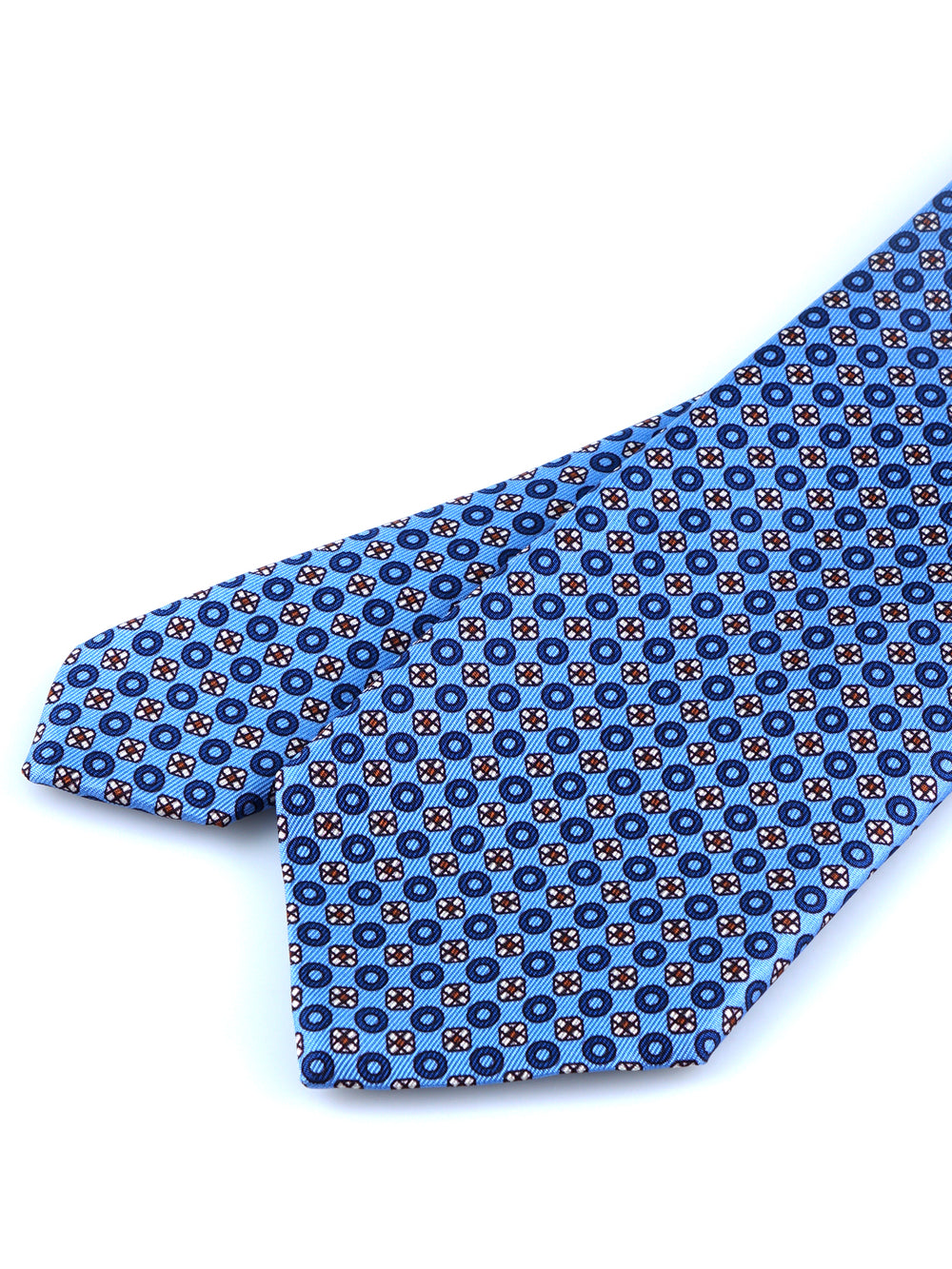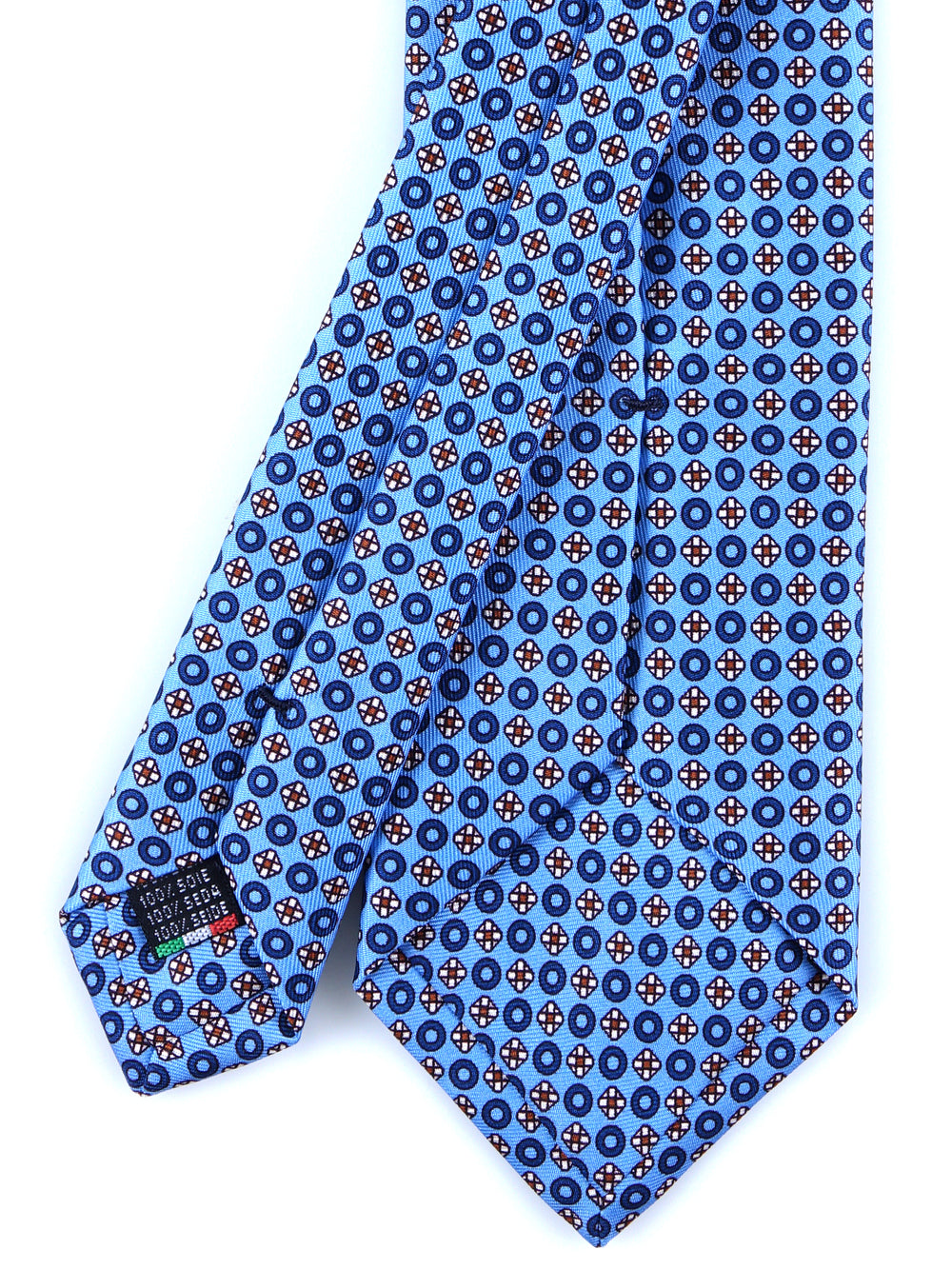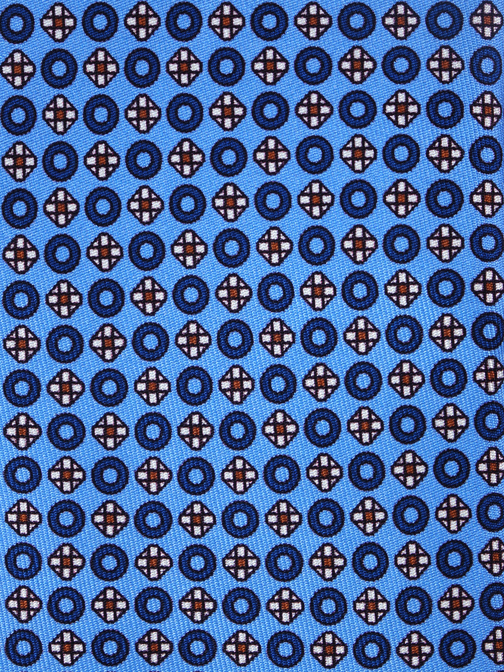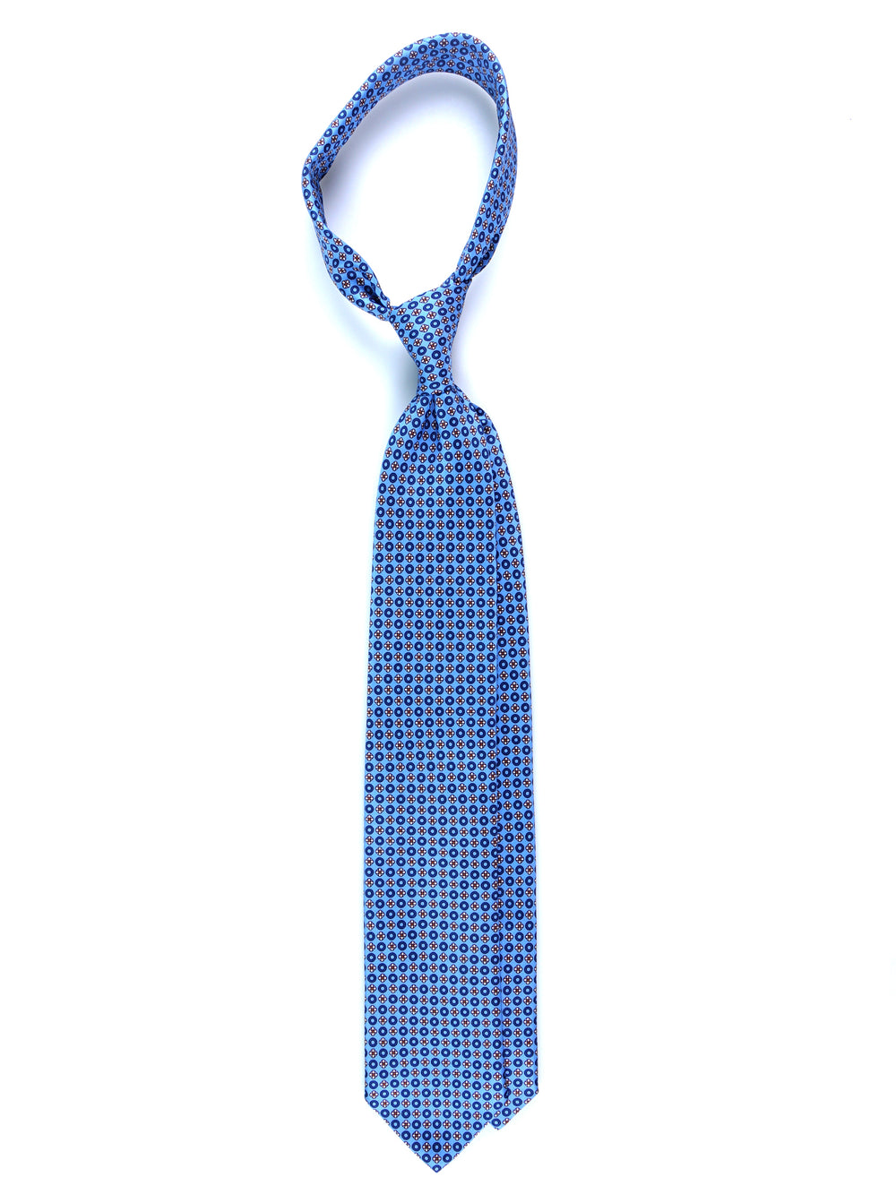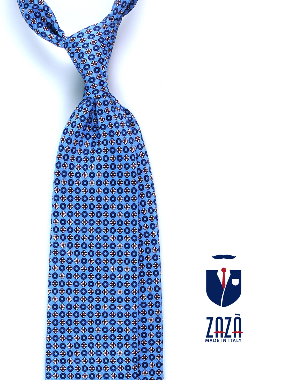 Un accessorio che cattura l'essenza dell'eleganza italiana: vivace, raffinata e mai banale. Questa cravatta ZAZÀ è realizzata in pregiata seta stampata dalla mano liscia e luminosa. La sua base in un fresco color azzurro è la tela perfetta per un micro-motivo geometrico che unisce la profondità del blu navy e il calore del bordeaux, creando un equilibrio cromatico di grande gusto. È la cravatta ideale per l'uomo che vuole aggiungere un tocco di colore distintivo al proprio stile, sia in contesti formali che casual.