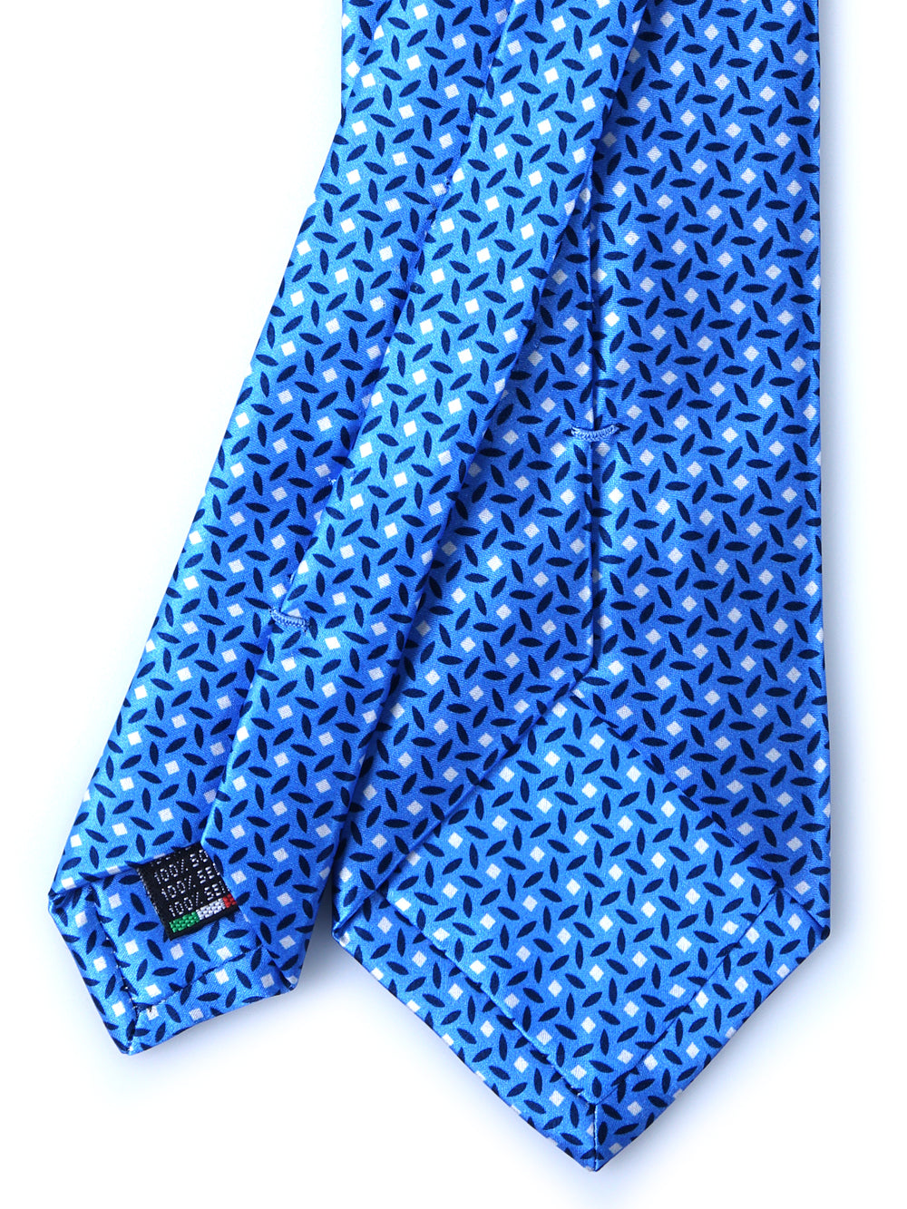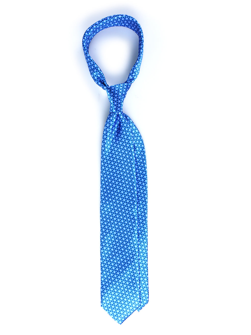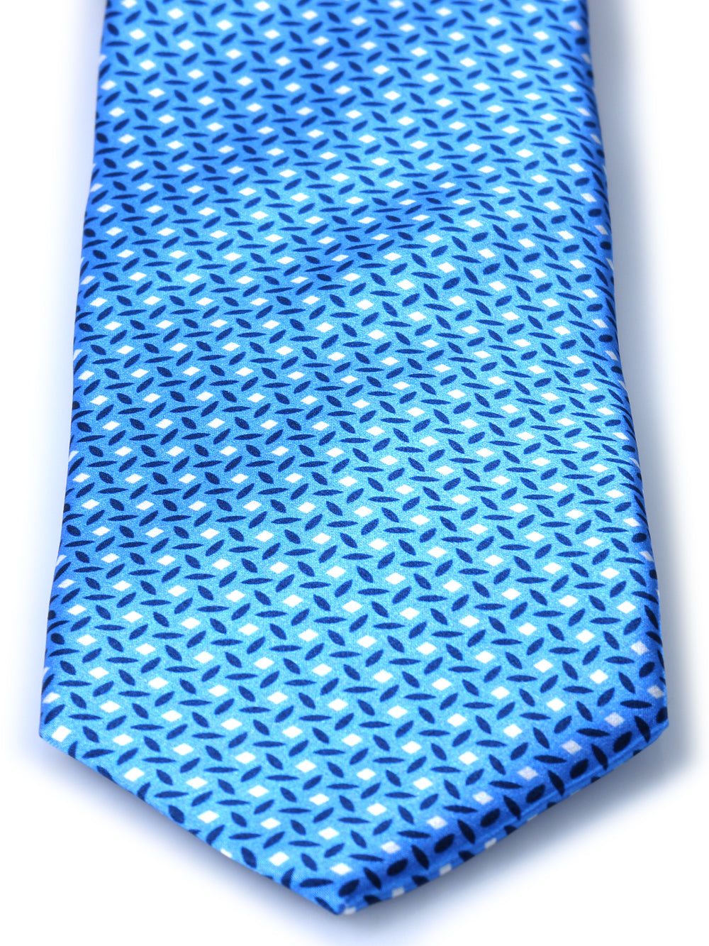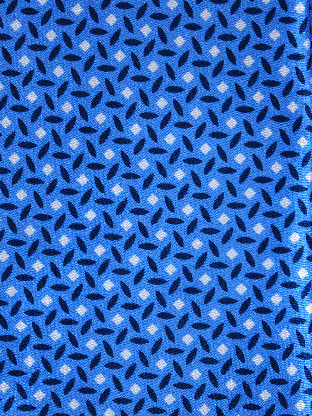 Questa cravatta è un inno alla luce e allo stile, un pezzo chiave della collezione Autunno/Inverno per l'uomo che apprezza il lusso materico. Realizzata in un prezioso Raso di Seta, la sua superficie liscia e luminosa cattura la luce in modo unico, donando una profondità cromatica eccezionale. Il disegno geometrico, un "falso unito" nei toni del blu e del bianco, la rende un passe-partout di lusso, incredibilmente versatile e sempre appropriato.