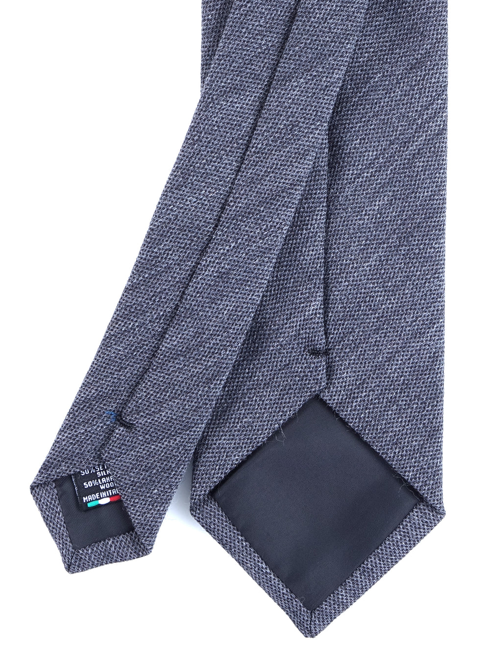 Un pilastro del guardaroba maschile, questa cravatta in seta e lana è l'essenza dell'eleganza versatile. La sua forza risiede nella texture: una micro-fantasia che da lontano crea un sofisticato effetto grigio-azzurro mélange, e da vicino rivela una trama ricca di dettagli. La mano corposa e il finish opaco la rendono un accessorio indispensabile per l'autunno e l'inverno, capace di aggiungere profondità tattile e visiva a ogni look.