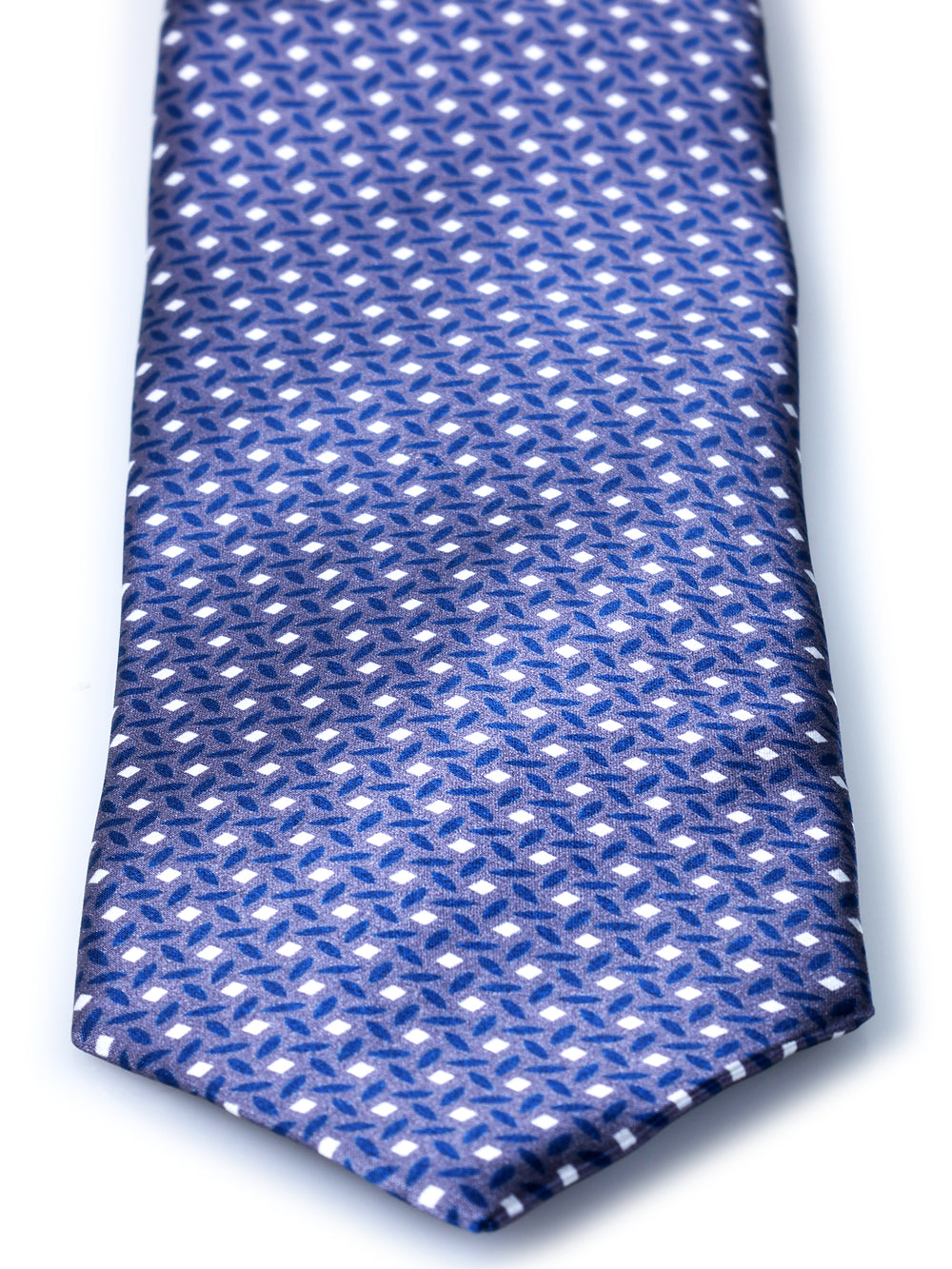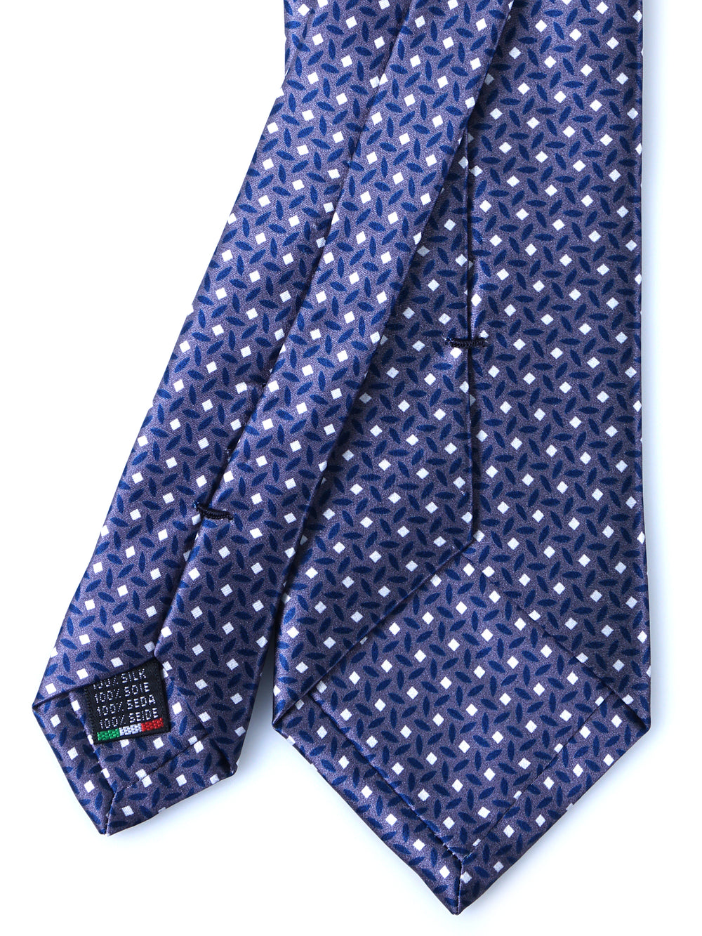 Questa cravatta è un inno alla purezza della seta, un pezzo chiave della collezione Autunno/Inverno per l'uomo che apprezza il lusso materico. Realizzata in un prezioso Raso di Seta, la sua superficie liscia e luminosa cattura la luce in modo unico, donando una profondità cromatica eccezionale. Il disegno geometrico, un "falso unito" nei toni classici del blu e del bianco, la rende un passe-partout di lusso, incredibilmente versatile e sempre appropriato.
