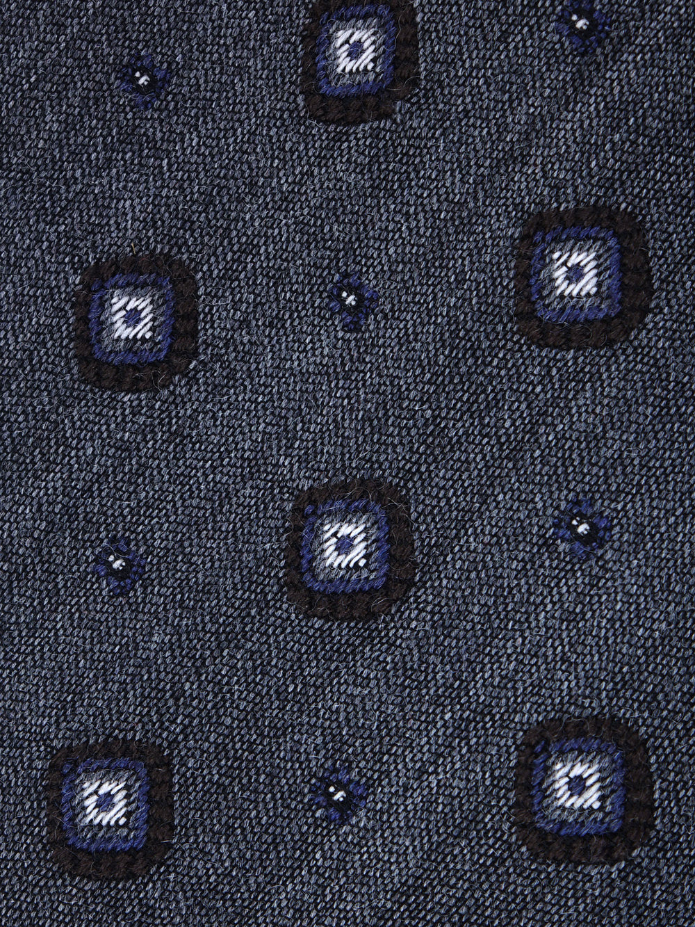 Fondo grigio con disegni piccoli e grandi in marrone, bluette e bianco